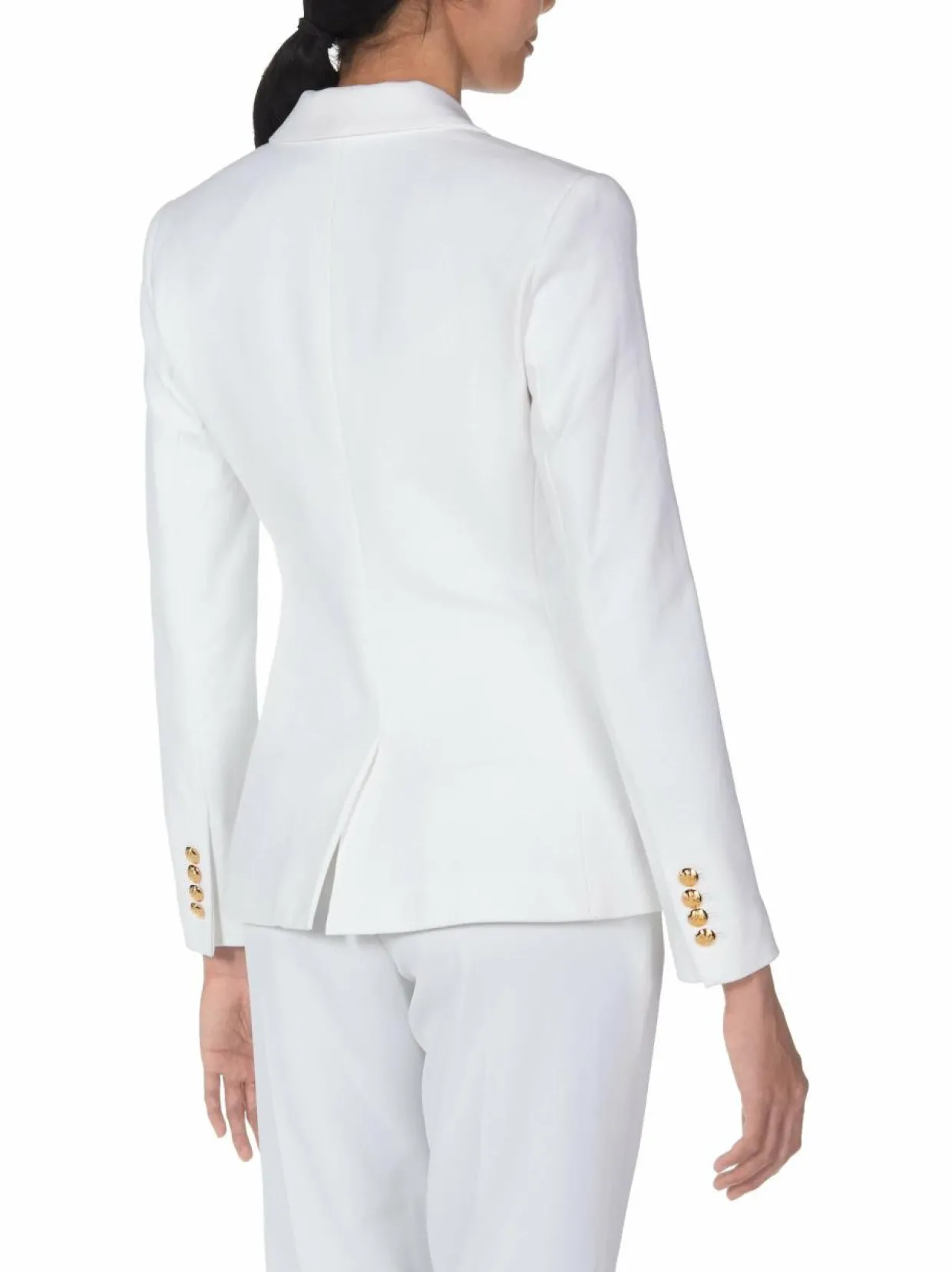Materiaali98 % puuvillaa ja 2 % elastaania Vuorimateriaali94 % polyesteriä ja 6 % elastaania PesuohjeetKemiallinen pesu KokotiedotMallilla on yllään koon S bleiseri. Mallin pituus on 176 cm, rinnanympärys 82 cm, lantionympärys 90 cm ja vyötärömitta 65 cm. ValmistusmaaFilippiinit Väri2WCF WHITE AvainsanatJakku
