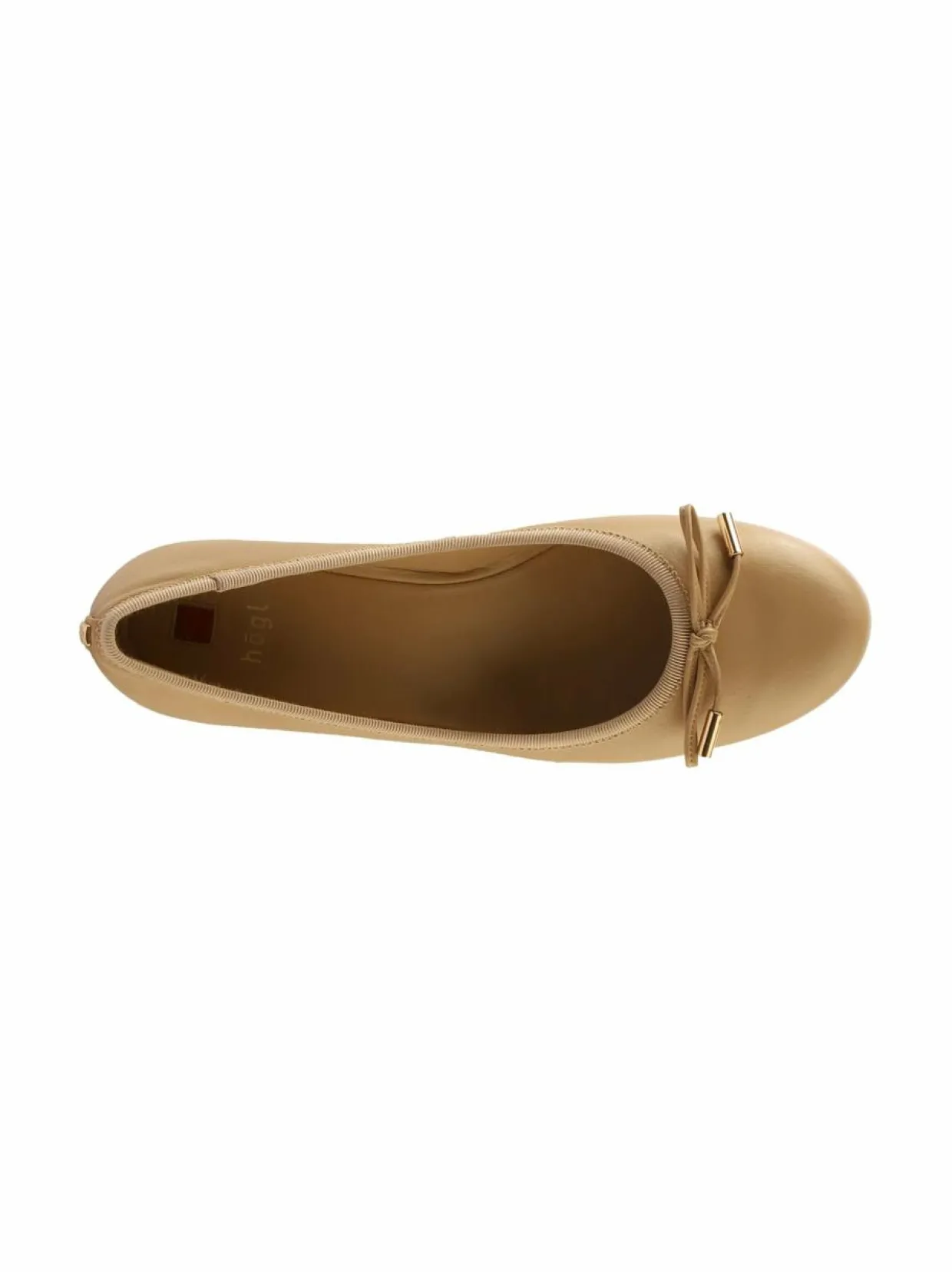 Mukavat pyöreäkärkiset ballerinat högl merkiltä. Kengät on valmistettu taipuisasta nahasta. Yksityiskohtana elegantti koristerusetti, kullansävyinen logomerkki kantapäässä ja matala tolppakorko. Tämä jalkinemalli sopii yhtä hyvin toimistolle kuin juhlaan.