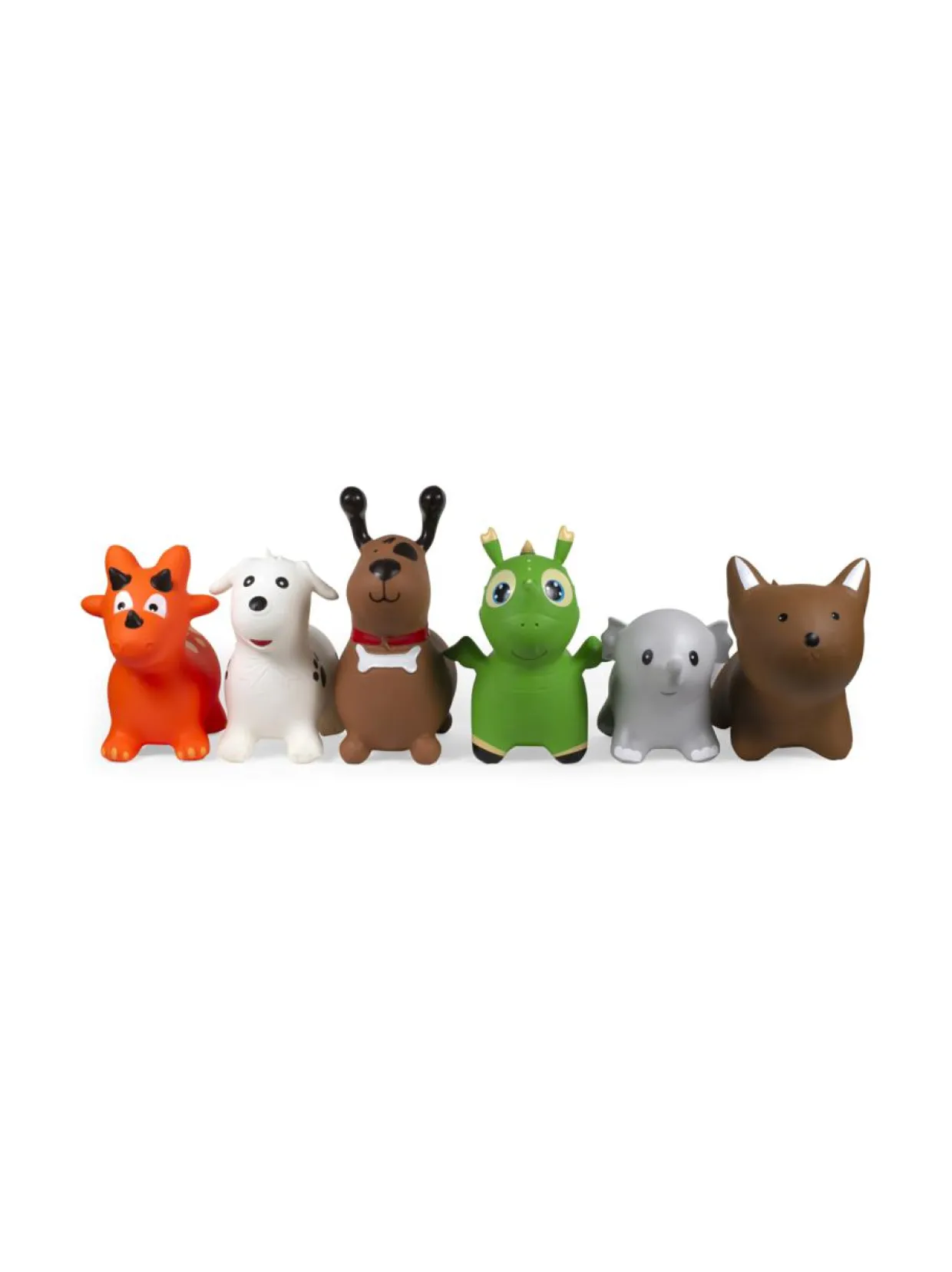 bo. Pomppueläimet auttavat kehittämään lapsen tasapainoa ja koordinaatiota leikkisällä tavalla. Eläimillä on suuret korvat tai sarvet, joista lapsen on helppo pitää kiinni ja tukevat jalat, jotta pomppiminen on turvallista. Valitse suosikkisi ja pompi iloisesti eläinten kanssa sisällä tai ulkona! Pumppu sisältyy pakkaukseen. Enimmäispaino: 50 kg. Mitat: 60 x 24 x 52 cm.