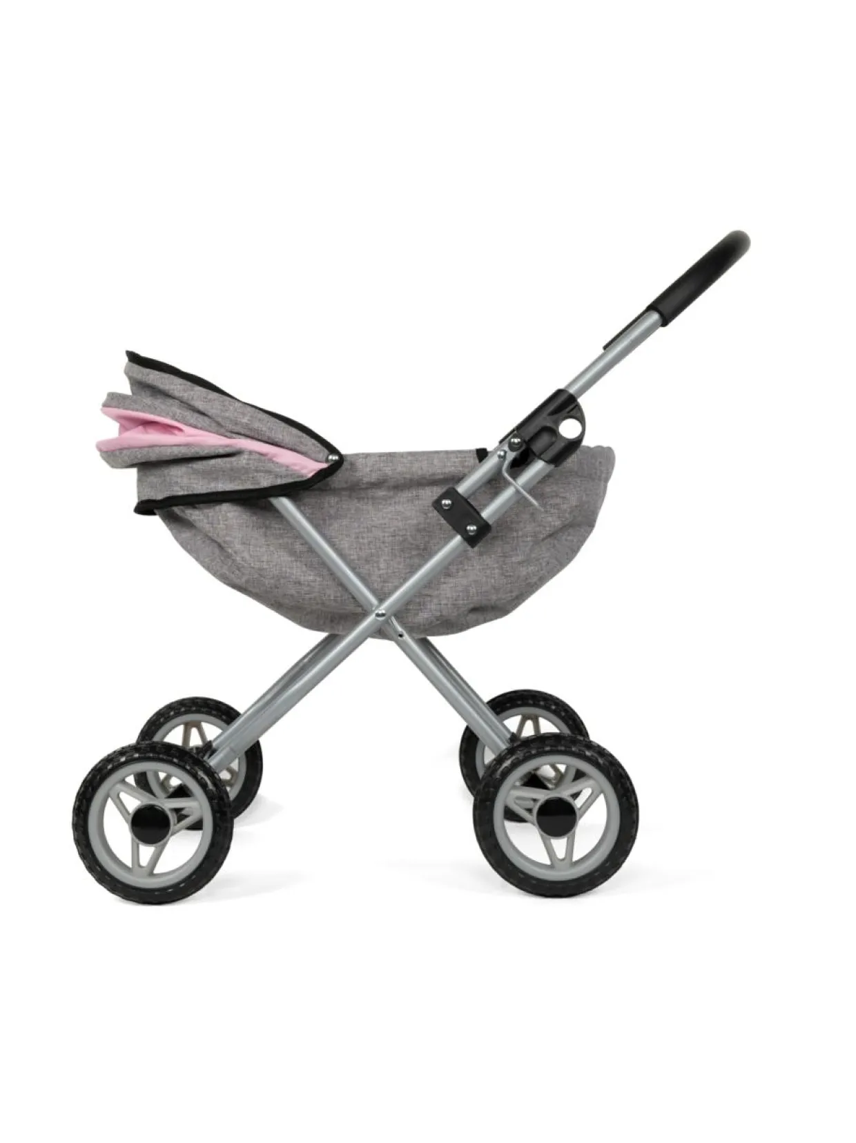 Esittelyssä bo. Rattaat – täydellinen lisä lempinukkesi seikkailuihin! Suunniteltu max. 42 cm pitkille nukeille. Rattaat tarjoavat yhdistelmän käytännöllisyyttä ja tyyliä. Tukevat renkaat ja pehmeä kahva takaavat, että nämä rattaat ovat vaivattomat liikutella. Rattaat ovat todella kevyet ja kompaktin kokoiset, joten niiden varastointi ja liikuttelu on helppoa! Tyylikkäät rattaat harmaa-vaaleanpunaisella kankaalla ovat todella elegantit ja modernit sekä käännettävä huppu takaa suojaa nukellesi olosuhteessa kuin olosuhteessa. Yhdistelmä tyyliä, käytännöllisyyttä ja leikkisyyttä tekevät näistä rattaista täydellisen lisän nukkekokoelmaasi.