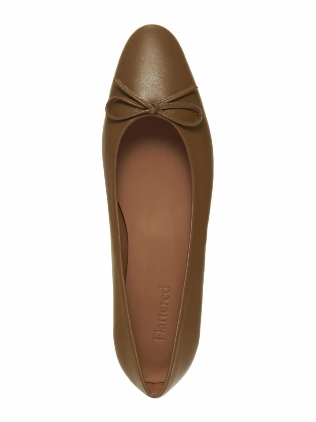Flattered Bodil -ballerinat ovat minimalistiset kesäkengät soikeilla kärjillä. Mallissa on ruseteilla somistettu mattanahkapäällinen ja nahkainen sisäpinta. Koron korkeus on 6 mm. Ulkopohja on valmistettu Thunit-kumista, joka on nahkaa muistuttava, taipuisa kumilaatu.