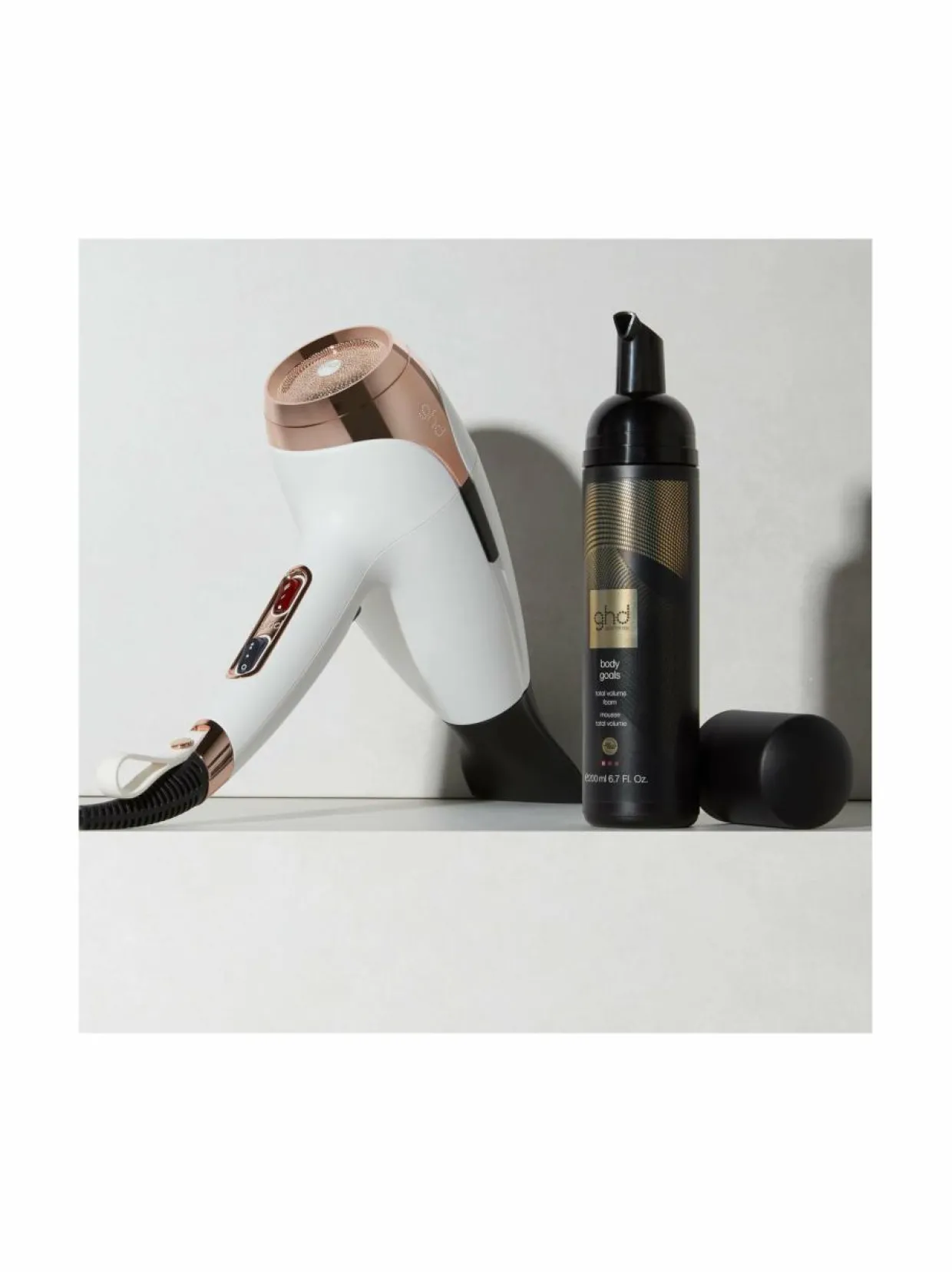 ghd Body Goals lisää hiuksiin tuuheutta ammattilaistasoisesti. Kevyt muotoiluvaahto on suunniteltu maksimoimaan lämpömuotoilutyökalujen tulokset.Ghd:n hiusmuotoilijoiden ja lämpöasiantuntijoiden suunnittelema ghd Body Goals sisältää ghd:n ainutlaatuisen lämpösuojajärjestelmän, joka säilyttää hiusten eheyden ja antaa huippuluokan tuuheutta. Tämä tuuheuttava muotoiluvaahto toimii yhteistyössä lämpömuotoilutyökalujen kanssa ja maksimoi kampauksesi tuuheuden.Tämä muotovaahto muodostaa näkymättömän suojan ja se auttaa luomaan ammattilaistasoisen tuuhean lopputuloksen. Sisältää ghd-lämpösuojan.