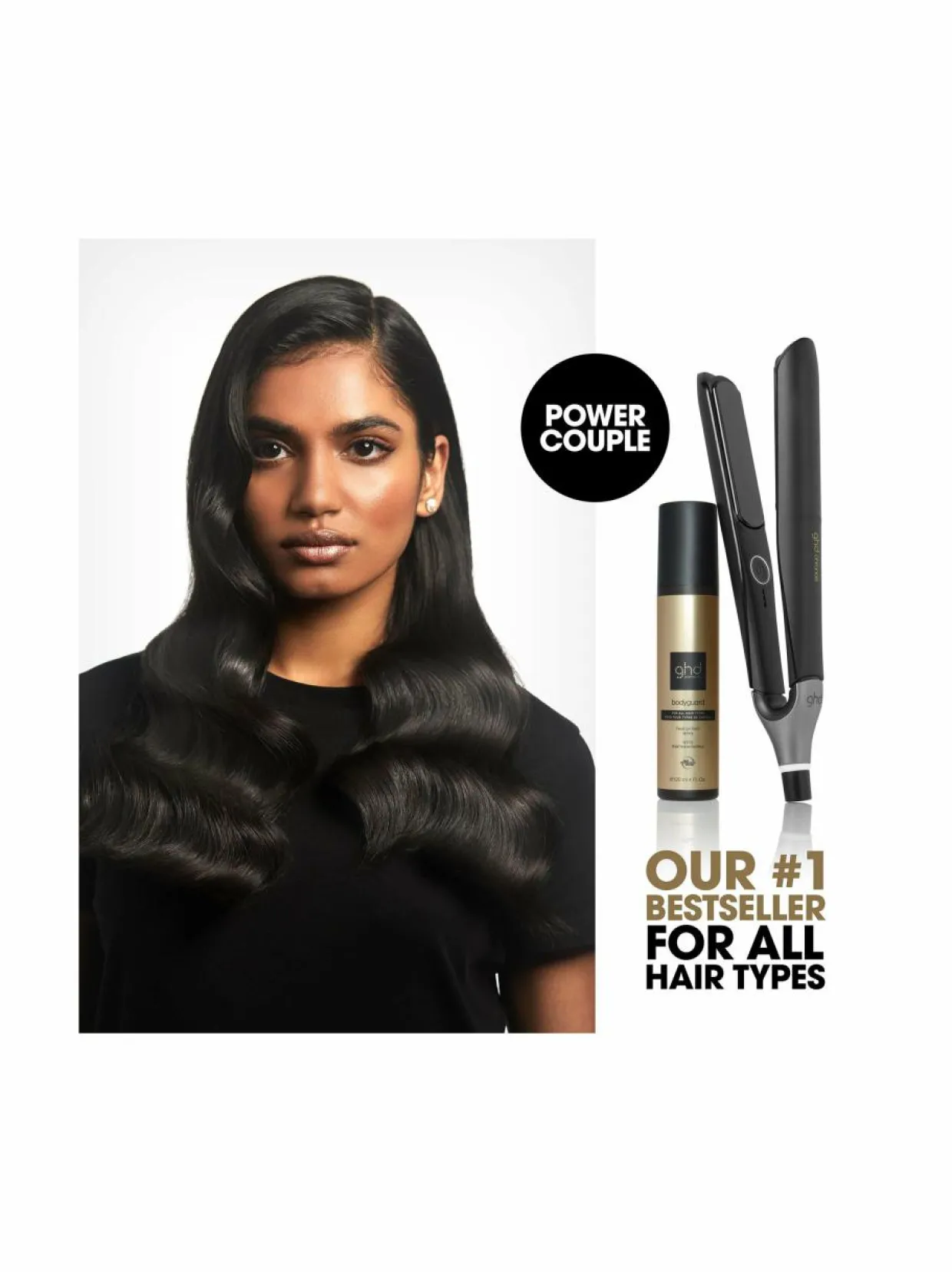 ghd:n uusi ja myydyin lämpösuojasuihke on: Bodyguard-lämpösuojasuihke.ghd Bodyguard on ghd:n hiusmuotoilijoiden ja lämpöasiantuntijoiden suunnittelema lämpösuojasuihke, jonka avulla luot ammattilaistason kampauksia lämpötyökaluilla murehtimatta hiusten vaurioitumista.Polymeerien ja hoitavien ainesosien ansiosta ghd:n lämpösuoja auttaa ehkäisemään hiusten pintakerroksen vahingoittumista silottamalla niiden pintaa. Suihke peittää jokaisen hiuksen, suojaa niitä päivittäiseltä muotoilulta ja saa hiukset näyttämään ja tuntumaan terveemmiltä. 9/10 on samaa mieltä*.Kevyt ja näkymätön koostumus sopii kaikille hiustyypeille. ghd Bodyguard maksimoi hiusten lämpömuotoilun, kiharruksen, laineet tai suoristuksen. Saat ammattilaistason tulokset käyttämällä ghd Platinum+ -suoristusrautaa ghd:n Bodyguard-hiussuihkeen kanssa. Suojaaminen on aina ajankohtaista.