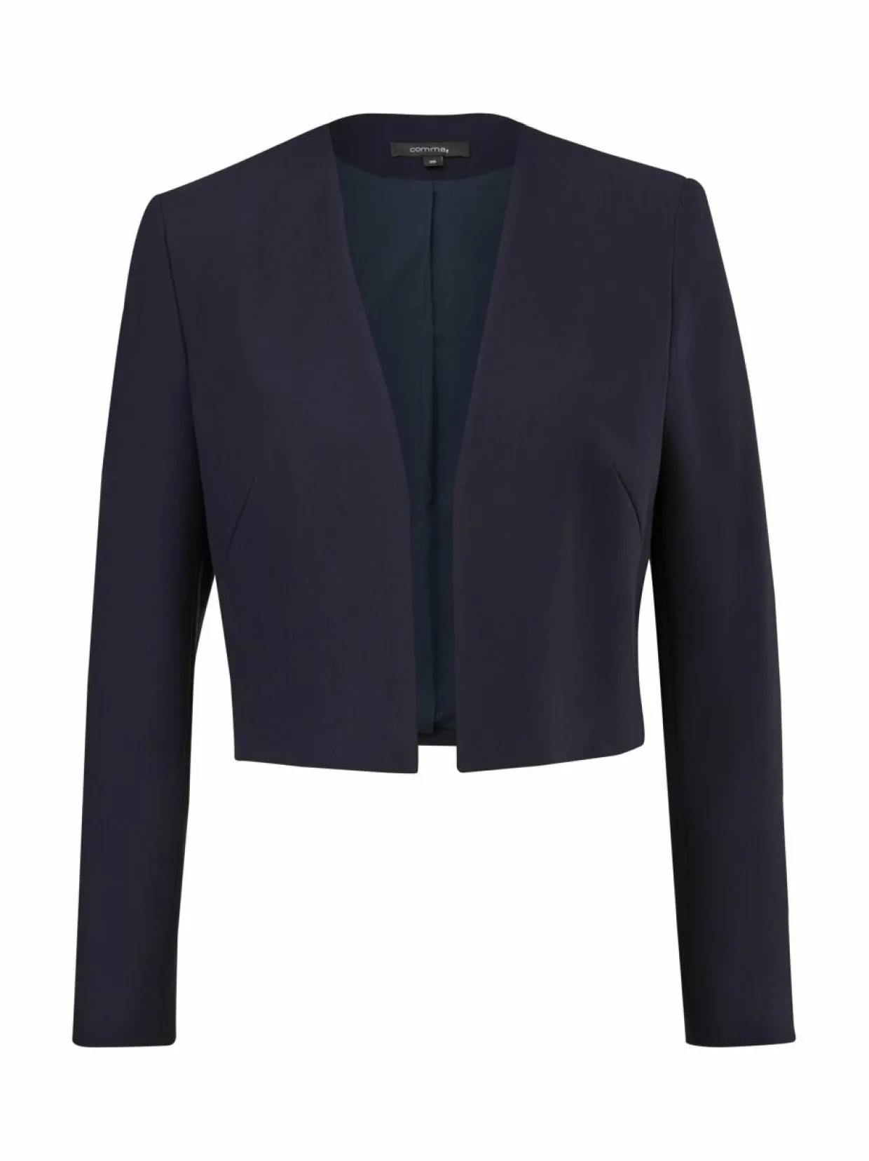 Materiaali63 % polyesteriä, 32 % viskoosia ja 5 % elastaania ValmistusmaaKiina Väri5976 NAVY Avainsanatcomma, bolero, jakku, lyhyt jakku, avonainen jakku