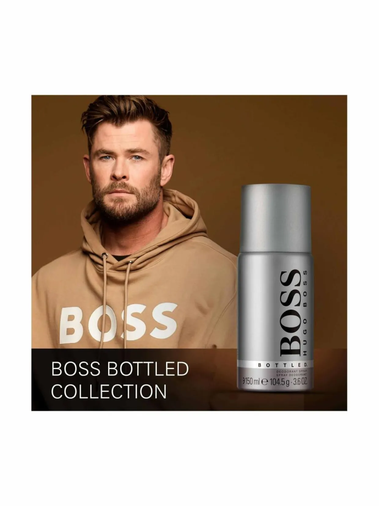 BOSS Bottled on menestyvän miehen klassikkotuoksuun pohjautuva suihkedeodorantti, jossa hurmaavat omenan ja sitruksen lisäksi seetripuu ja vetiver.