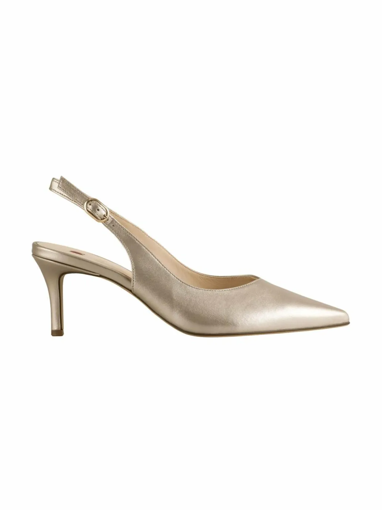 Kestävän tyylin ja laadukkaat naisten nahkaiset korkokengät.Laadukas pintanahka ja kapea korko tekevät näistä juhlakengistä sekä imartelevat että elegantin naiselliset. Ohut nilkkahihna on säädettävissä pienellä koristesoljella.Nämä klassiset kengät on valmistettu Euroopassa ympäristöystävällisesti käyttämällä LWG Gold -sertifioitua nahkaa.