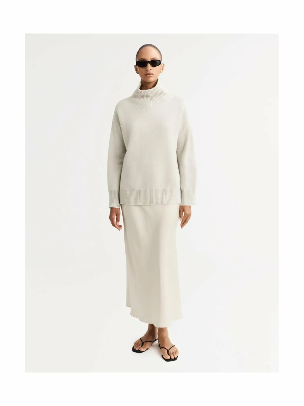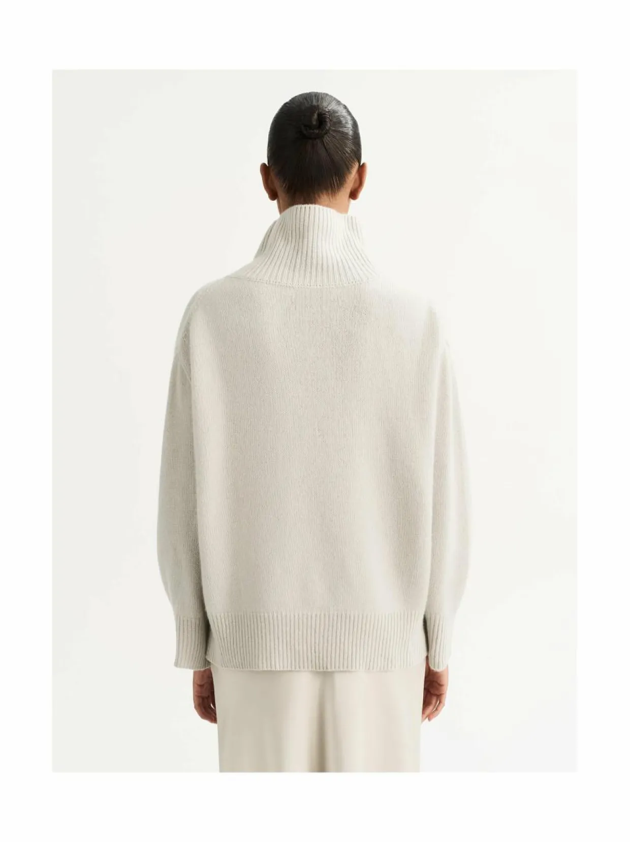 Soft Goatin Boyfriend Turtleneck -neule on kudottu 100 % ylellisestä kashmirista. Neuleessa on rento istuvuus ja suuri poolokaulus. Olkapäät ovat pudotetut. Tyylin viimeistelevät reunoilla olevat joustinneuleresorit.