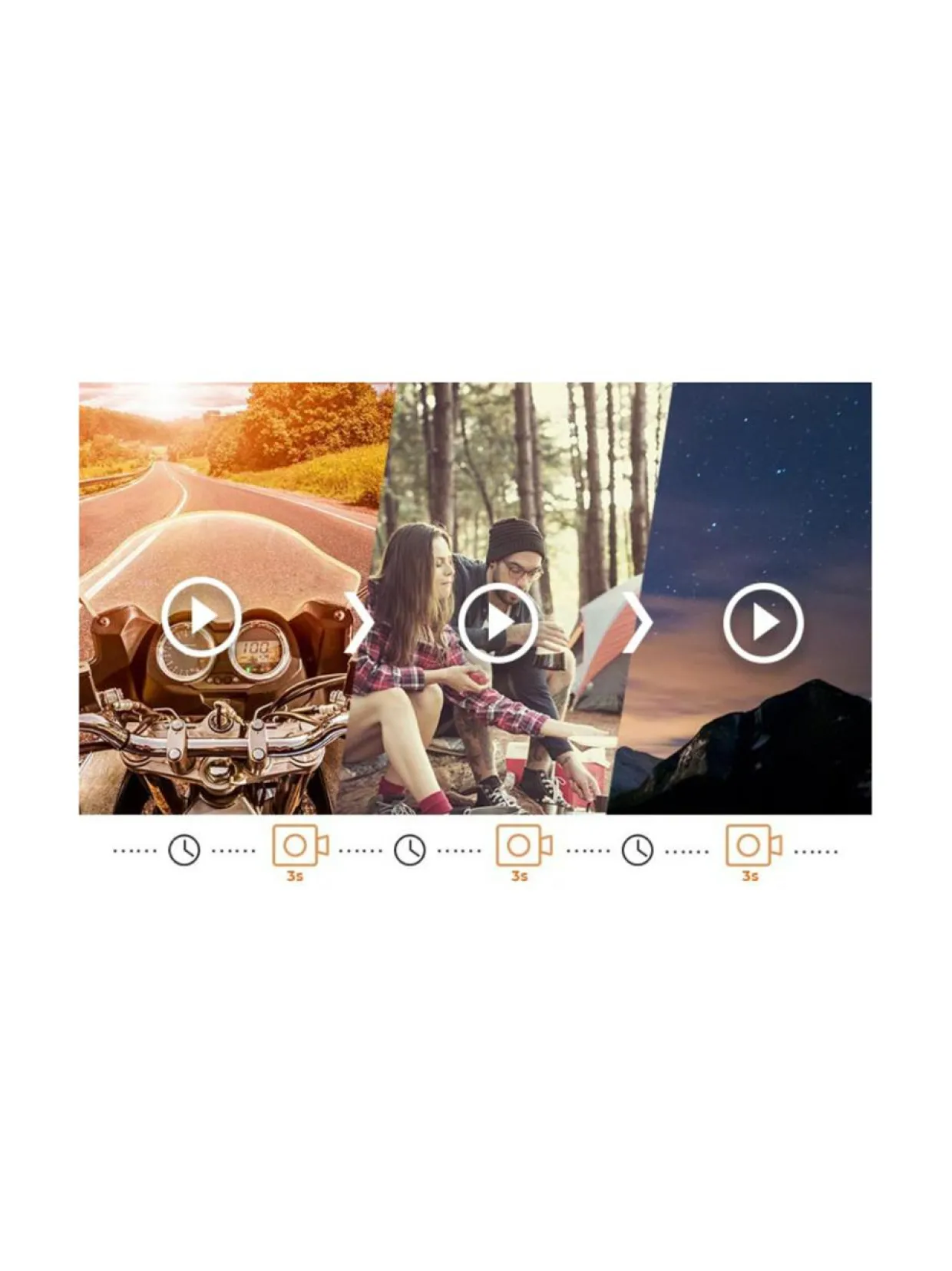 Timelapse: Kamera ottaa kuvan tietyn väliajoin. Voit säätää kuvanotto-väliksi 1s – 24h. Kun videoinnin lopettaa, kamera koostaa automaattisesti kuvista videon. Sopii esimerkiksi auringonlaskun, rakennusprojektien kuvaamiseen tmv.