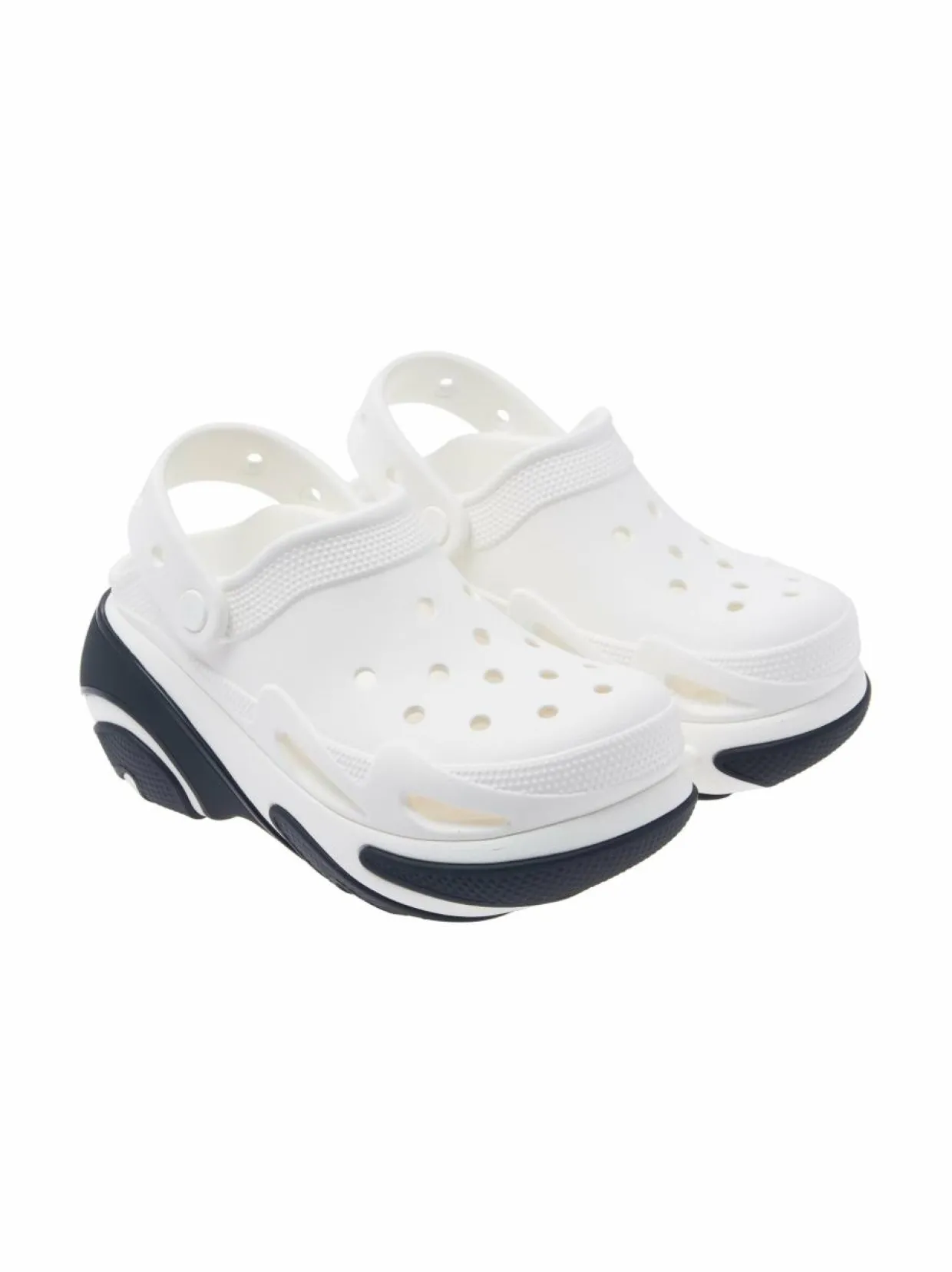Näissä rohkeissa clogeissa saat katseet kääntymään – katutyyli kohtaa huippumuodin, ja voit tuoda esille ainutlaatuista tyyliäsi. Muotoilultaan sulavalinjaisissa Bubble Crush Clog -kengissä on liioiteltu, kaksivärinen kumiosa pohjassa, tyylikkäitä yksityiskohtia ja korokepohja, jolla nostat asun kuin asun aivan uudelle tasolle. Nämä kengät on suunniteltu korostamaan itseilmaisua, ja niin kantaremmin kuin päällisenkin voi koristella Jibbitz™-koruilla. Sujauta Bubble Crush Clog -kengät jalkaan ja ole rohkeasti oma itsesi!
