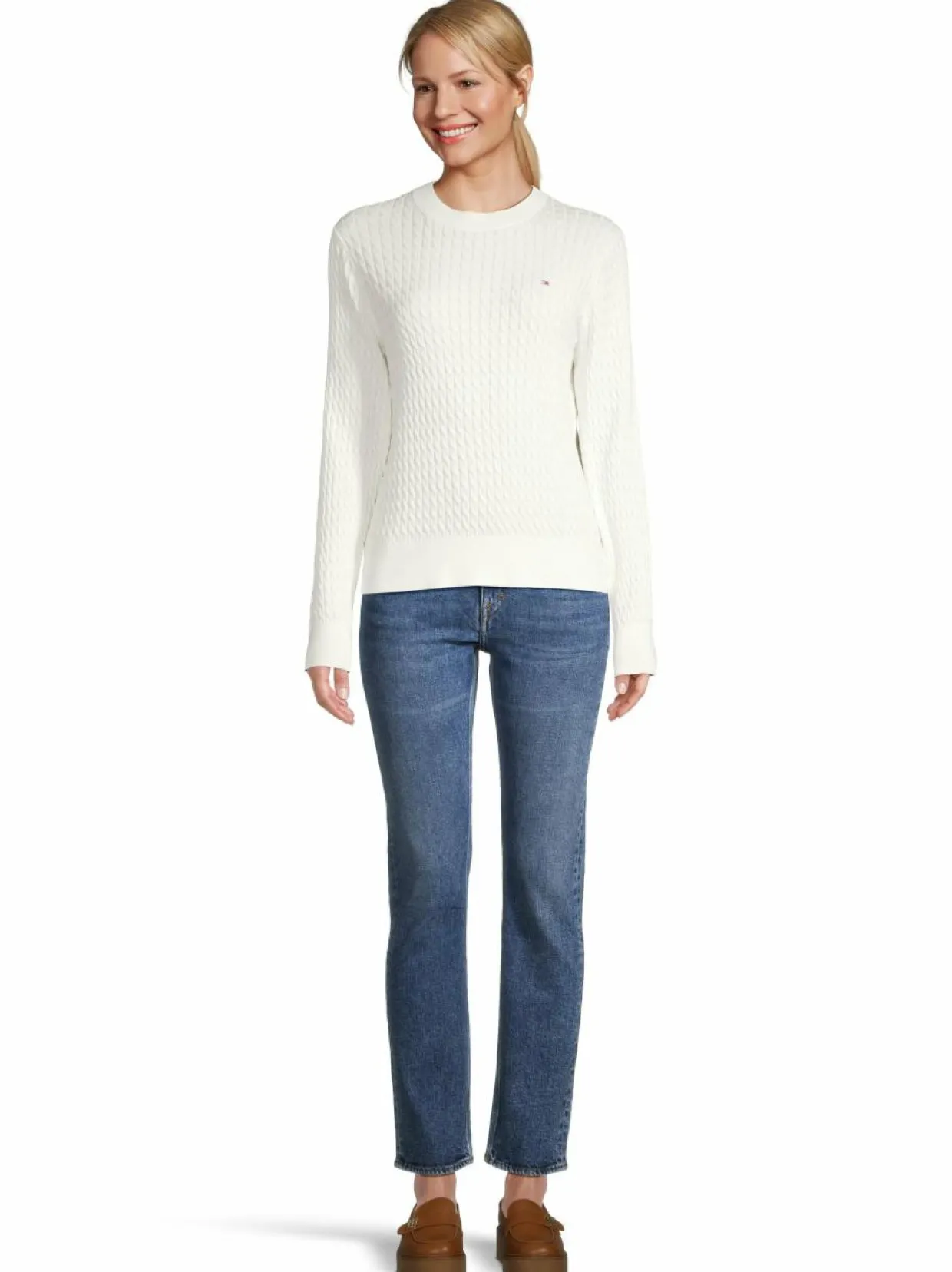 Materiaali100 % puuvilla Hoito-ohjeetHienopesu 30 asteessa VäriYA8 IVORY SILK Avainsanatneulepusero, puuvillaneule, palmikkoneule, Tommy Hilfiger