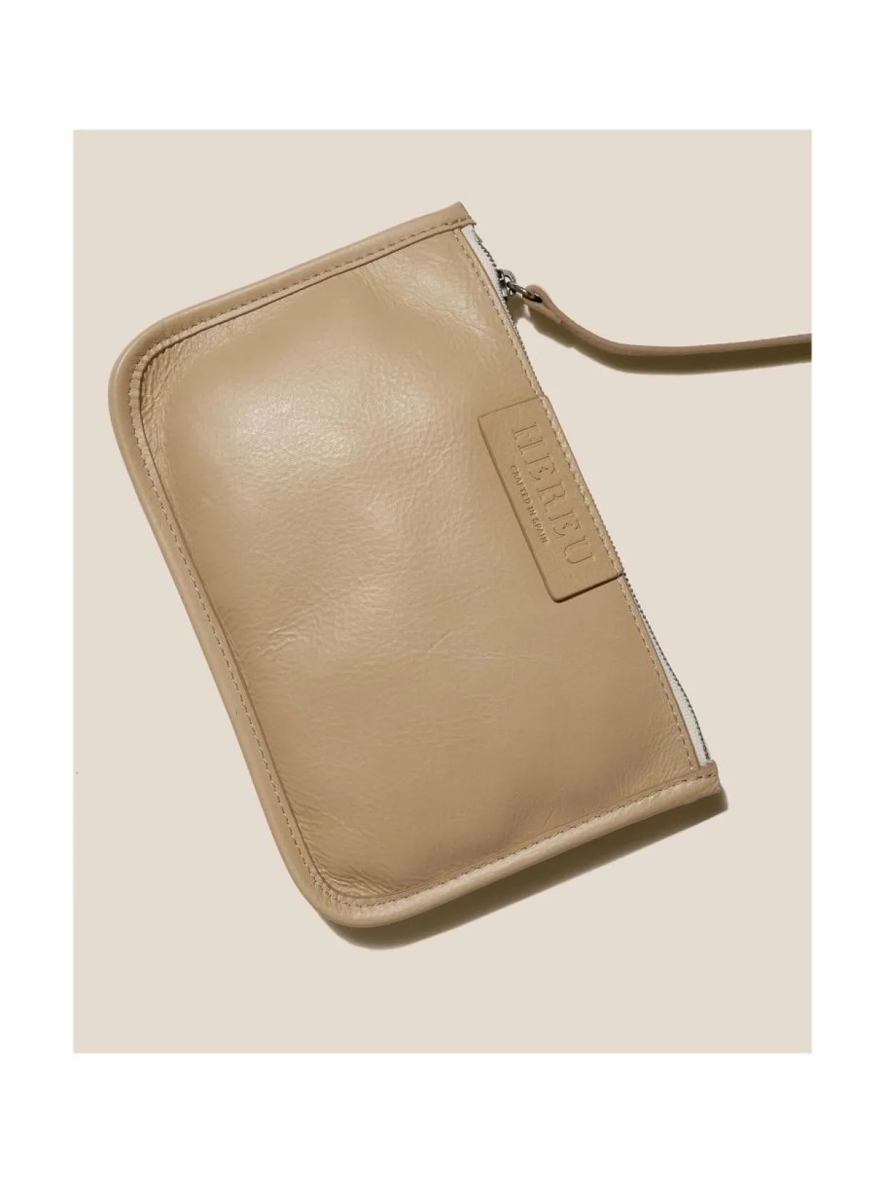 Tilava laukku on valmistettu pehmeästä nahasta. Laukussa kantokahvat ja irrotettava pieni pussi.Mitat: 30 x 11 x 8 cm