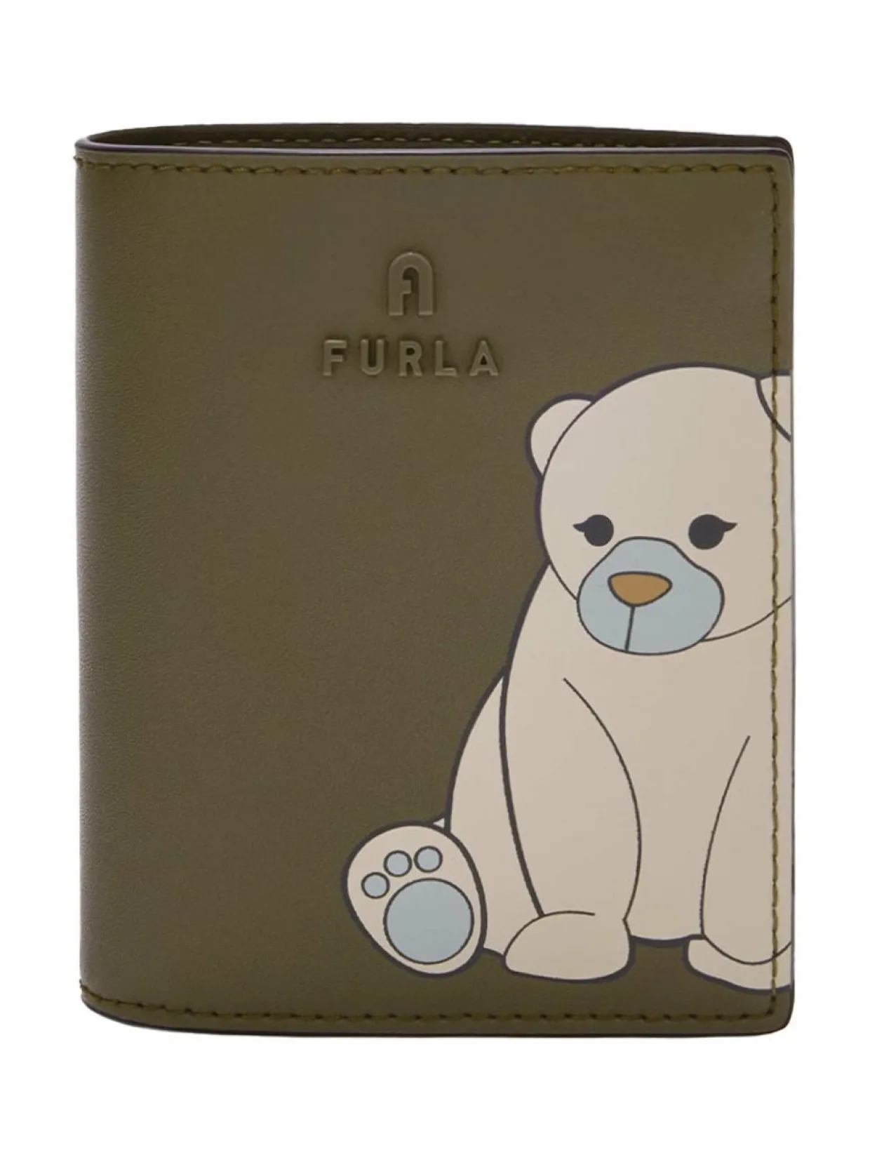 Kompakti lompakko Furlalta, jossa on riittävästi tilaa niin korteille kuin käteiselle sekä kolikoille. Camelia Compact -lompakko on valmistettu hienorakenteisesta nahasta. Sen edessä on söpä karhun kuva.