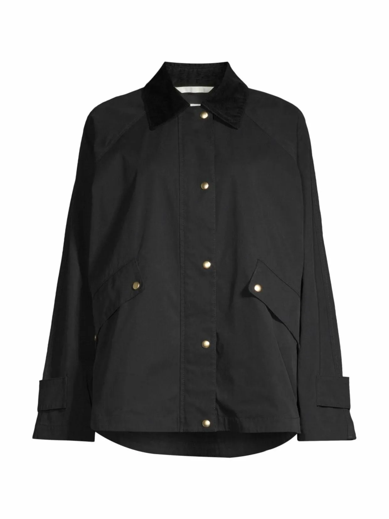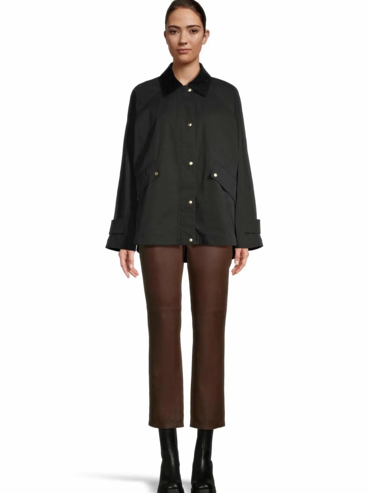 Tämä takki on valmistettu luomupuuvillasta, joka tuntuu miellyttävältä ja on hengittävä. Vahamainen pinta antaa takille modernin ilmeen ja tekee siitä myös vettähylkivän. Takissa on kaulus, joka luo klassisen ilmeen. Takin a-linjainen malli antaa takille rennon ja mukavan istuvuuden. Takissa on kontrastikaulus ja läppätaskut, jotka lisäävät käytännöllisyyttä ja luovat kiinnostavan yksityiskohdan. Takki on täydellinen valinta jokapäiväiseen käyttöön.