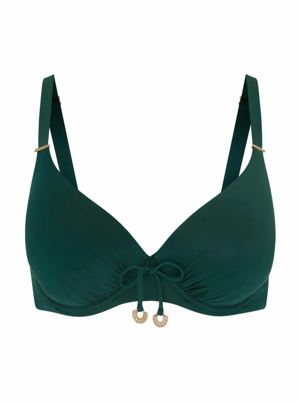 Marc & André:n Capricious-bikiniyläosa on muotoiltu ja varustettu kaarituilla. Se on valmistettu pehmeästä ja joustavasta materiaalista, joka tuntuu mukavalta iholla. Siinä on säädettävät olkaimet ja takana solkikiinnitys. Se on täydellinen valinta naisille, jotka etsivät mukavaa ja tyylikästä bikinien yläosaa. 84 % materiaalista on kierrätettyä polyamidia.