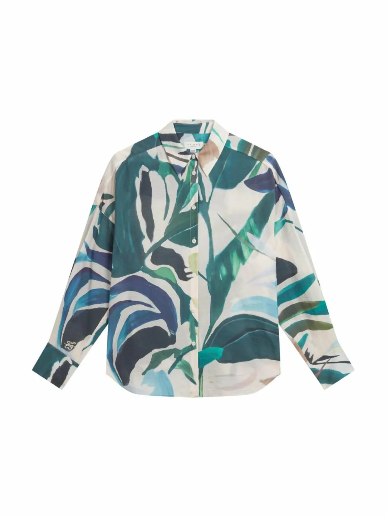 Ted Bakerin Carlova-paita on valmistettu pehmeästä ja hengittävästä Tencel lyocell- ja polyamidisekoitteesta. Paita on rento ja oversized-mitoitettu, ja siinä on kaunis lehtikuvio. Paita on täydellinen valinta arkeen ja juhlaan. Se sopii erinomaisesti farkkujen, hameen tai housujen kanssa.