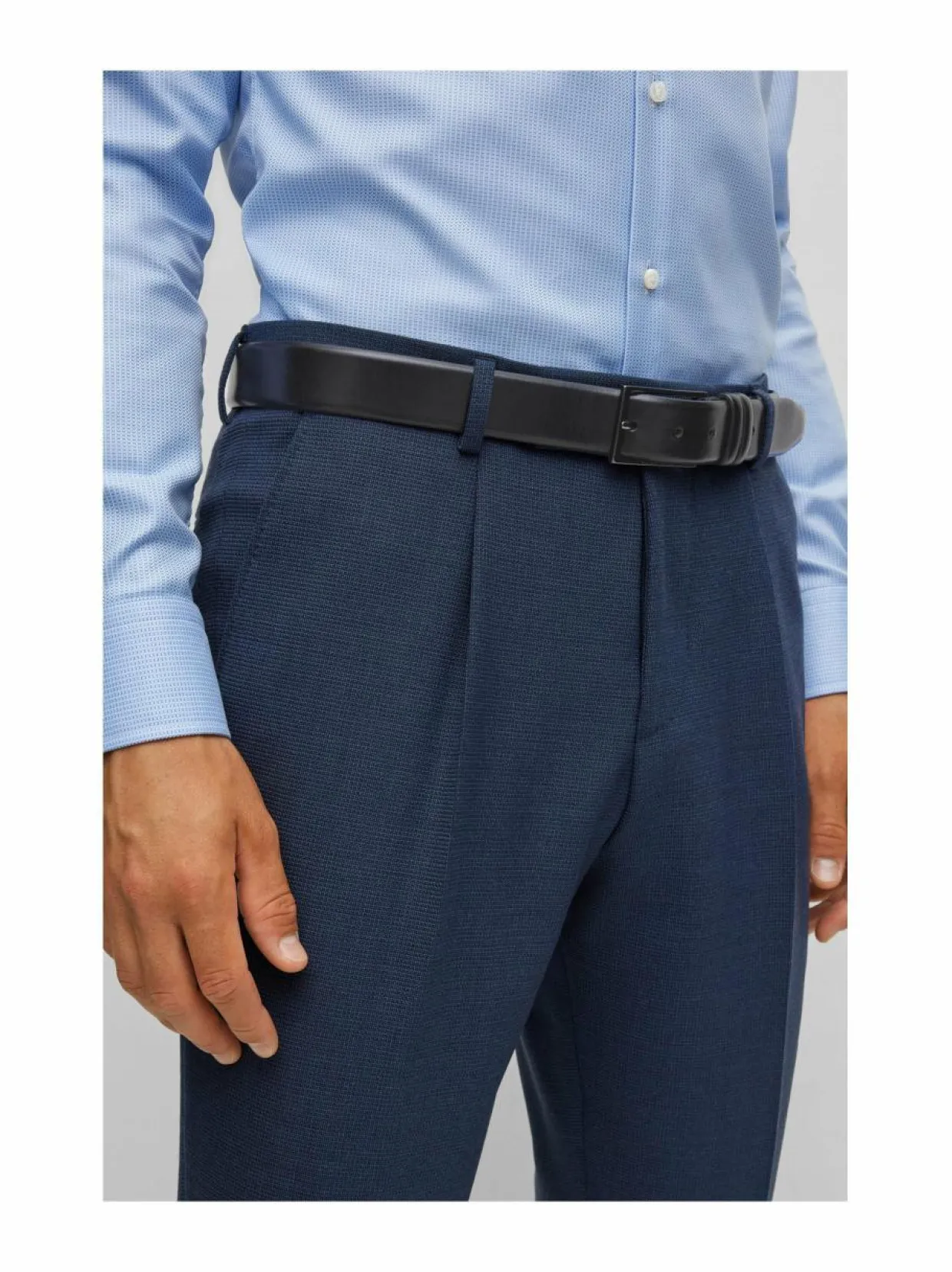Pehmeästä lehmännahasta valmistettu BOSS Carmello-vyö viimeistelee tyylikkään asukokonaisuuden.