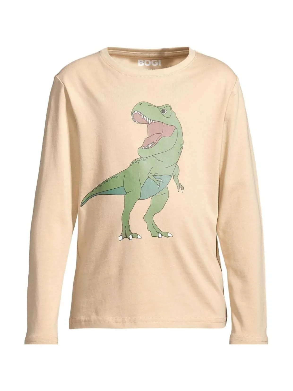 Bogin Casper on pehmeä ja mukava pitkähihainen trikoopaita, jossa on dinosaurusprintti. Paidan materiaali on joustavaa luomupuuvillatrikoota, mikä tekee siitä hengittävän ja miellyttävän tuntuisen. Paidan leikkaus on normaali.