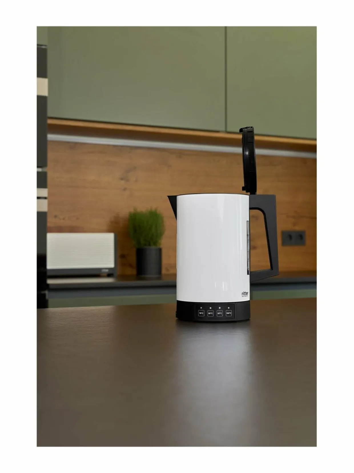 Tuotenumero171910764 Materiaali100 % muovi Hoito-ohjeetPuhdista vedenkeitin säännöllisesti valmistajan ohjeiden mukaisesti. Älä käytä hankaavia pesuaineita tai teräsvillaa. Takuu24 kk VäriWHITE Koko22×24,5×15 CM AvainsanatRitter, vedenkeitin, langaton, lämpötila-asetukset, 360°, akryyli