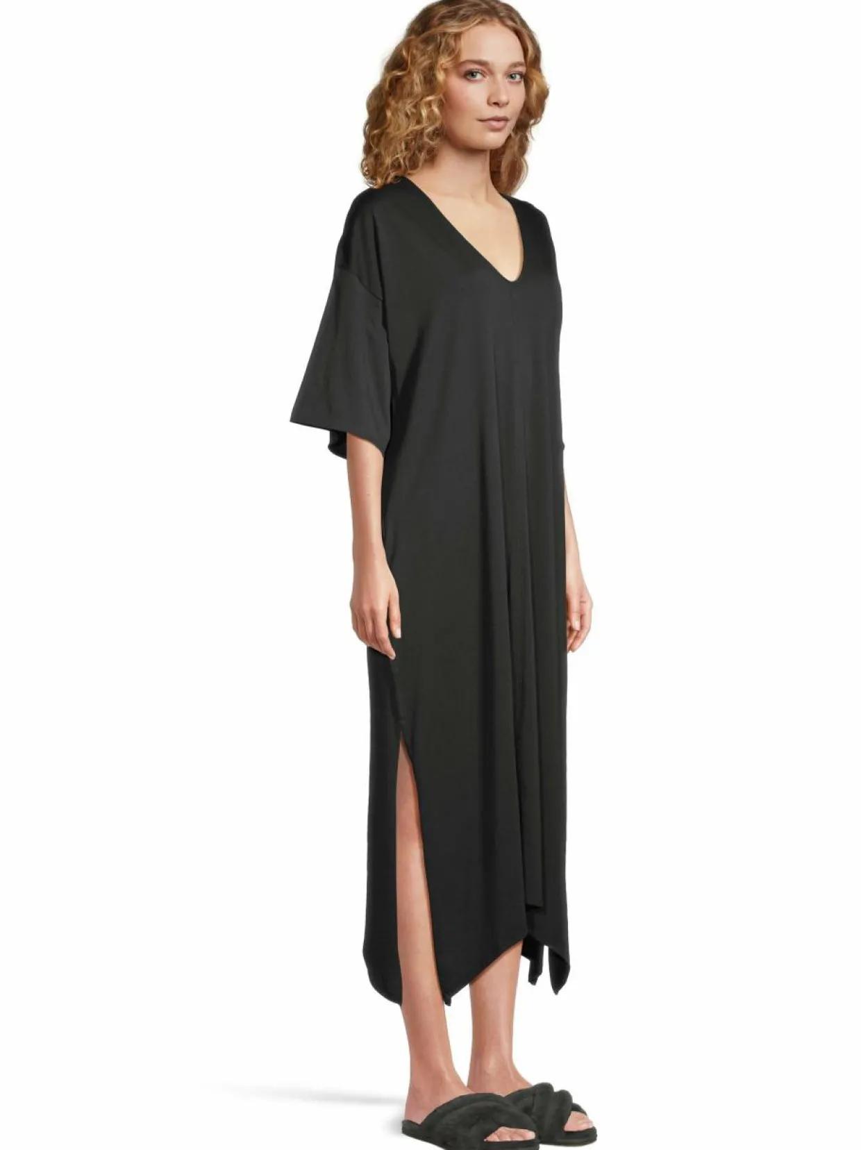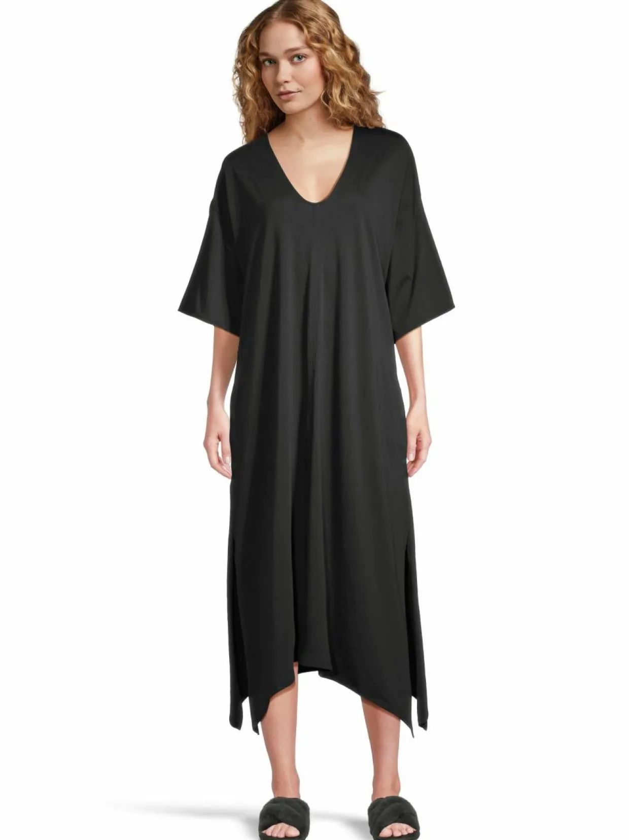 Skin-brändin Cecile-kaftaani on valmistettu pehmeästä ja mukavasta materiaalista. Se on rento ja väljä, ja siinä on V-aukkoinen pääntie ja lyhyet hihat. Yömekossa on sivuilla taskut ja sen helma on asymmetrinen. Se sopii täydellisesti rentoon ja mukavaan iltaan kotona. Yömekko on valmistettu 100 % luomupuuvillasta, joten se on sekä mukava että ympäristöystävällinen.