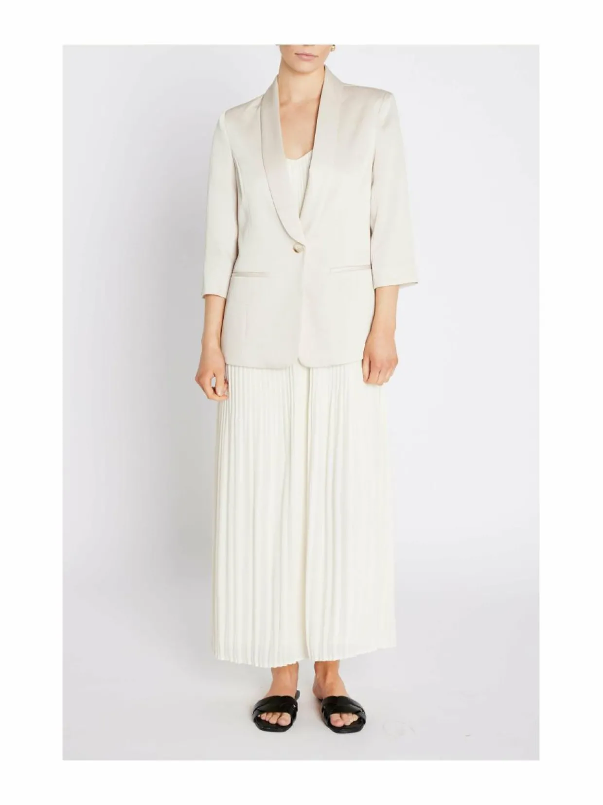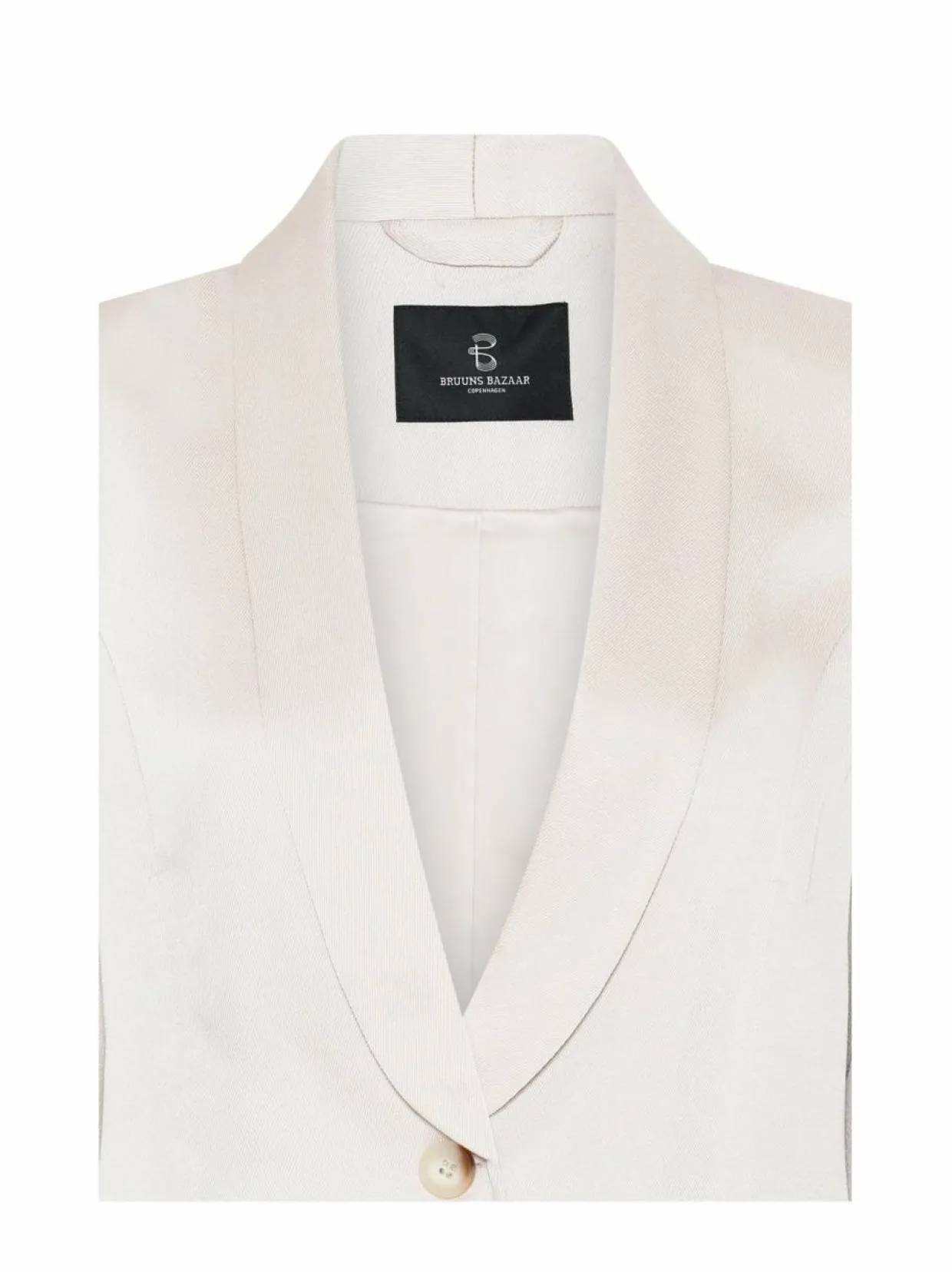 Bruuns Bazaarin Cedars Davia -bleiseri on tyylikäs ja elegantti vaate arkeen ja juhlaan. Se on valmistettu 100 % kierrätetystä polyesteristä. Bleiserissä on kaunis, pehmeä ja sileä pinta, joka antaa sille ylellisen ilmeen. Se on suunniteltu istuvaksi ja siinä on tyylikäs, leveä kaulus. Mallissa on kaksi etutaskua ja se suljetaan yhdellä napilla. Se on täydellinen valinta, kun haluat lisätä asuusi tyylikkyyttä ja eleganssia.