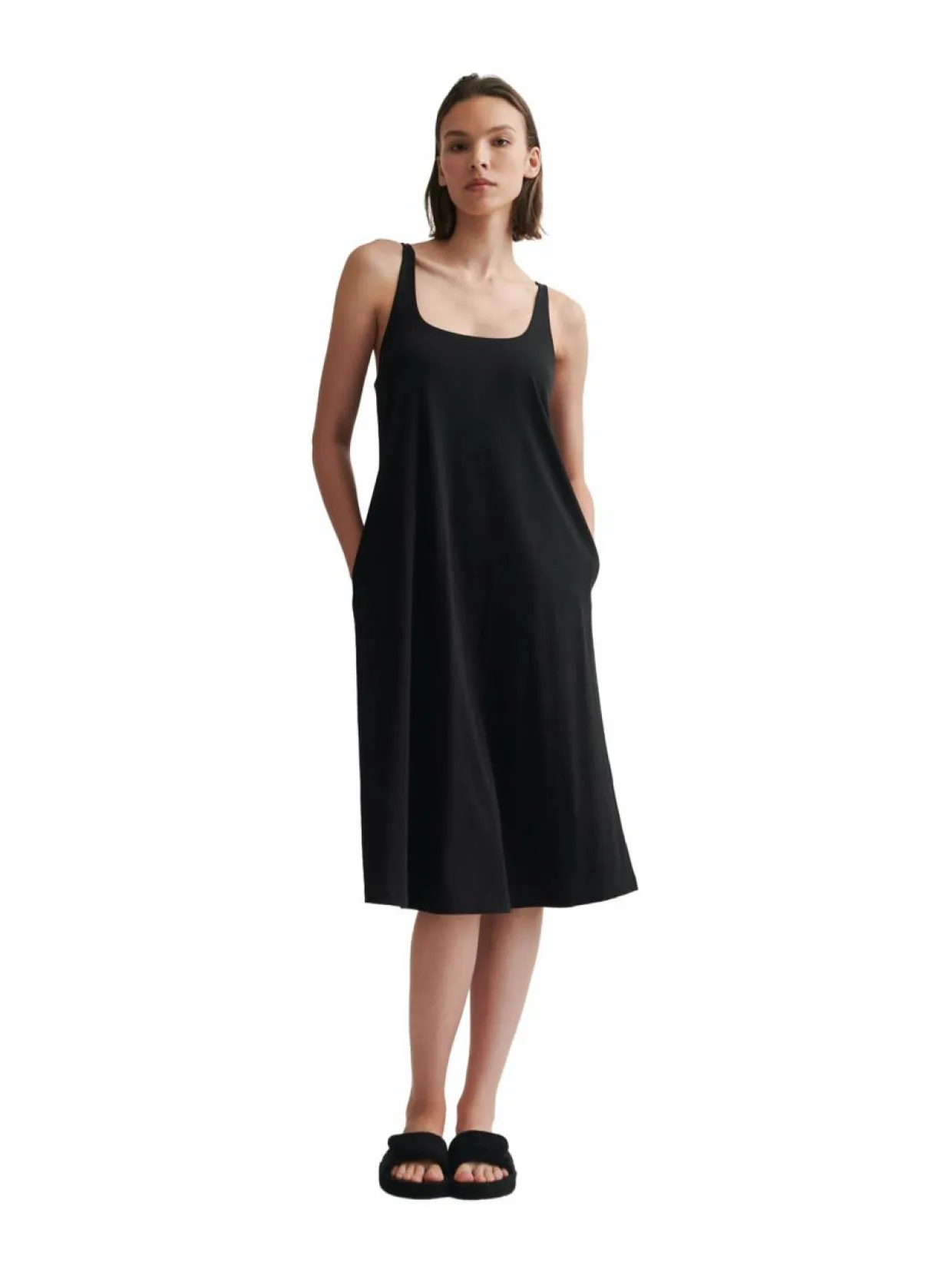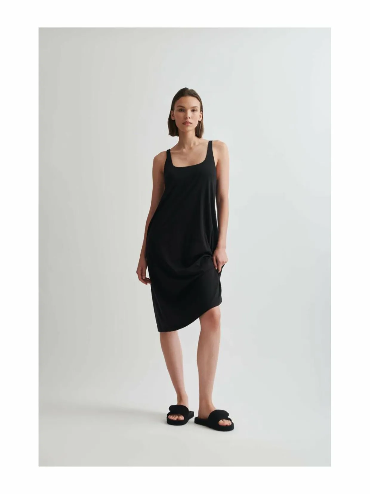 Skin-merkin hihattomassa yöpaidassa on rento ja mukava istuvuus. Pehmeästä Pima-puuvillasta valmistettuna se sopii erityisesti herkkäihoisille. Yöpaita toimii täydellisesti myös kerrospukeutumisen perustana, tarjoten kevyen ja hengittävän aluskerroksen, jonka päälle voit lisätä neuleen tai kimonon rentoihin aamuhetkiin.