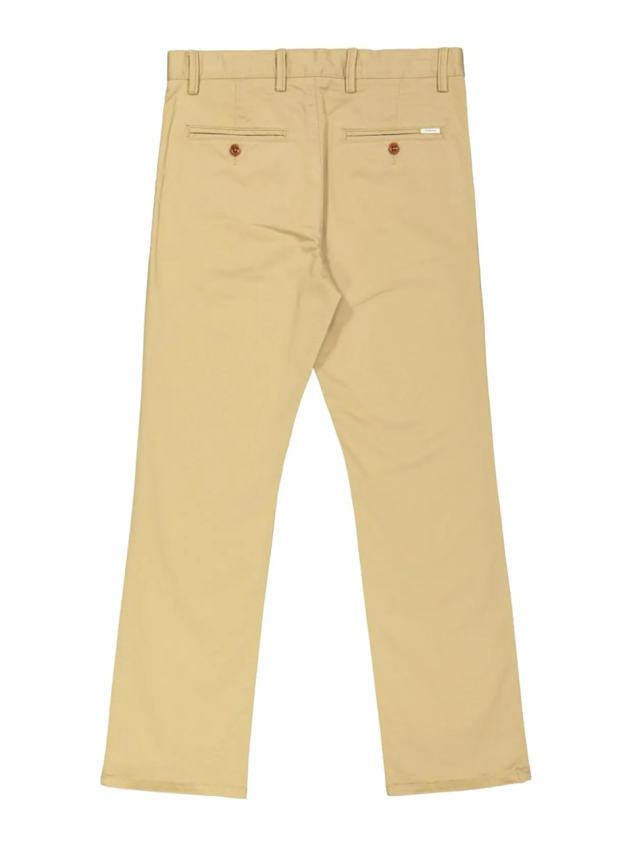Suoralahkeiset nuorten chinot Regular fit -mitoituksella. Housuissa on viistot sivutaskut ja takana teretaskut. Yhdistä preppy-tyyliset housut vaikka pikeepaitaan tai kauluspaitaan. Tuotteen valmistuksessa on käytetty luomupuuvillaa.