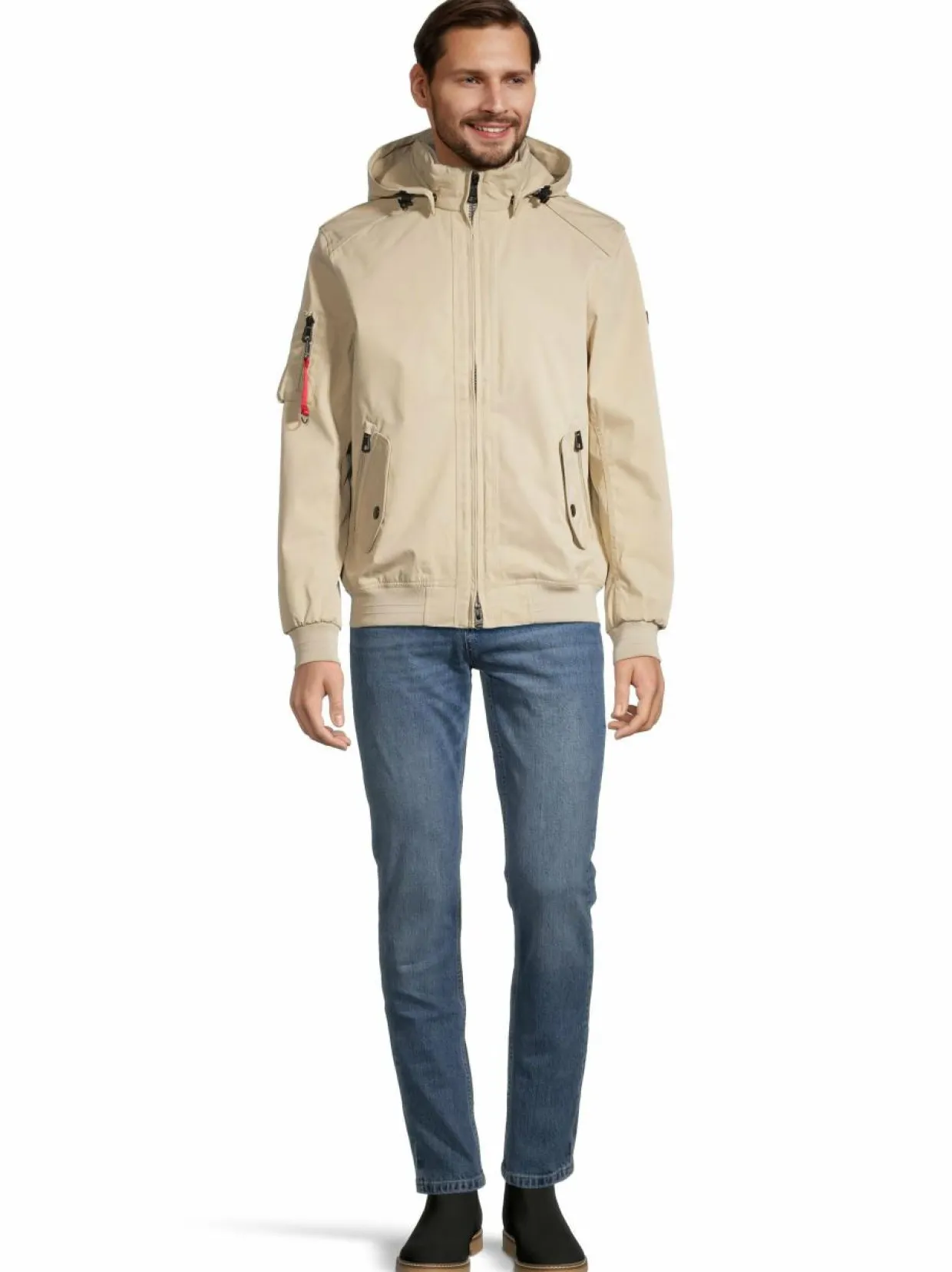 - Useita ulkotaskuja (mm. hihatasku)