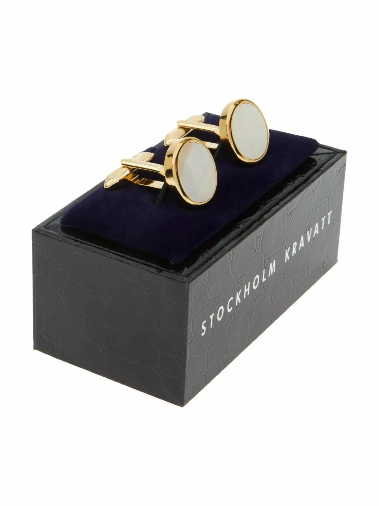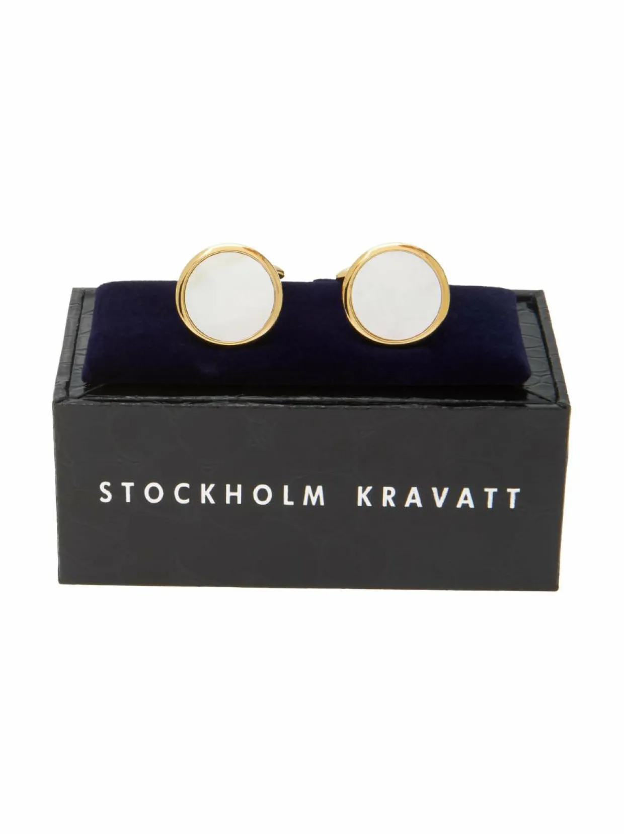 Pyöreät kalvosinnapit Stockholm Kravatt merkiltä. Kalvosinnapit lisäävät hienostunut aksentin asullesi. Ne kiinnitetään kaksinkertaisilla kalvosimilla varustettuun paitaan. Ihanteellinen valinta myös lahjaksi.