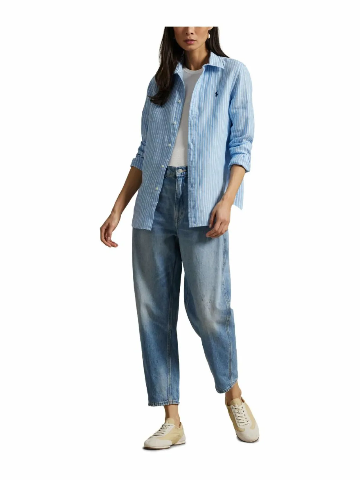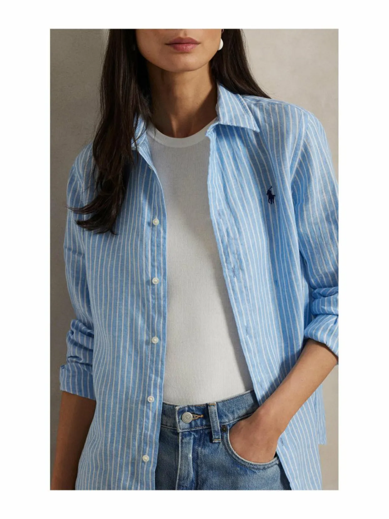 Polo Ralph Laurenin Classic-paita yhdistää ajattoman tyylikkyyden ja kevyen mukavuuden. Tämä 100 % pellavasta valmistettu paita on täydellinen valinta rentoon mutta huoliteltuun pukeutumiseen. Hienostuneet pystysuorat raidat ja klassinen kauluspaitamalli tekevät siitä monikäyttöisen ja helposti yhdisteltävän eri asuihin ja tilanteisiin. Pehmeä ja hengittävä pellava tuntuu miellyttävältä iholla, ja pitkät hihat lisäävät monipuolisuutta ympäri vuoden. Ralph Laurenin ikoninen logo viimeistelee tyylin.