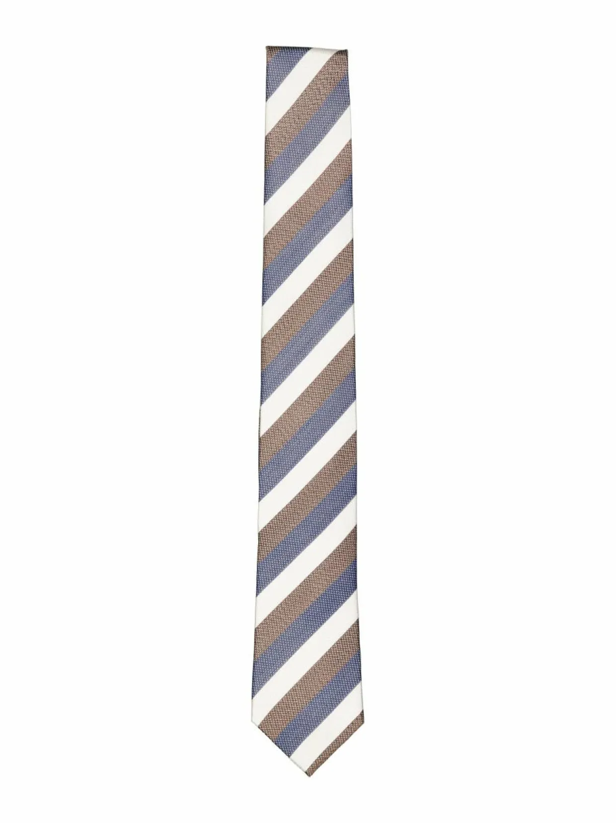 Klassinen solmio hienossa jacquard-raitakuosissa. Amanda Christensenin Classic-solmio on valmistettu ylellisestä silkistä. Se viimeistelee juhla- ja bisnespukeutumisen elegantilla tyylillä.