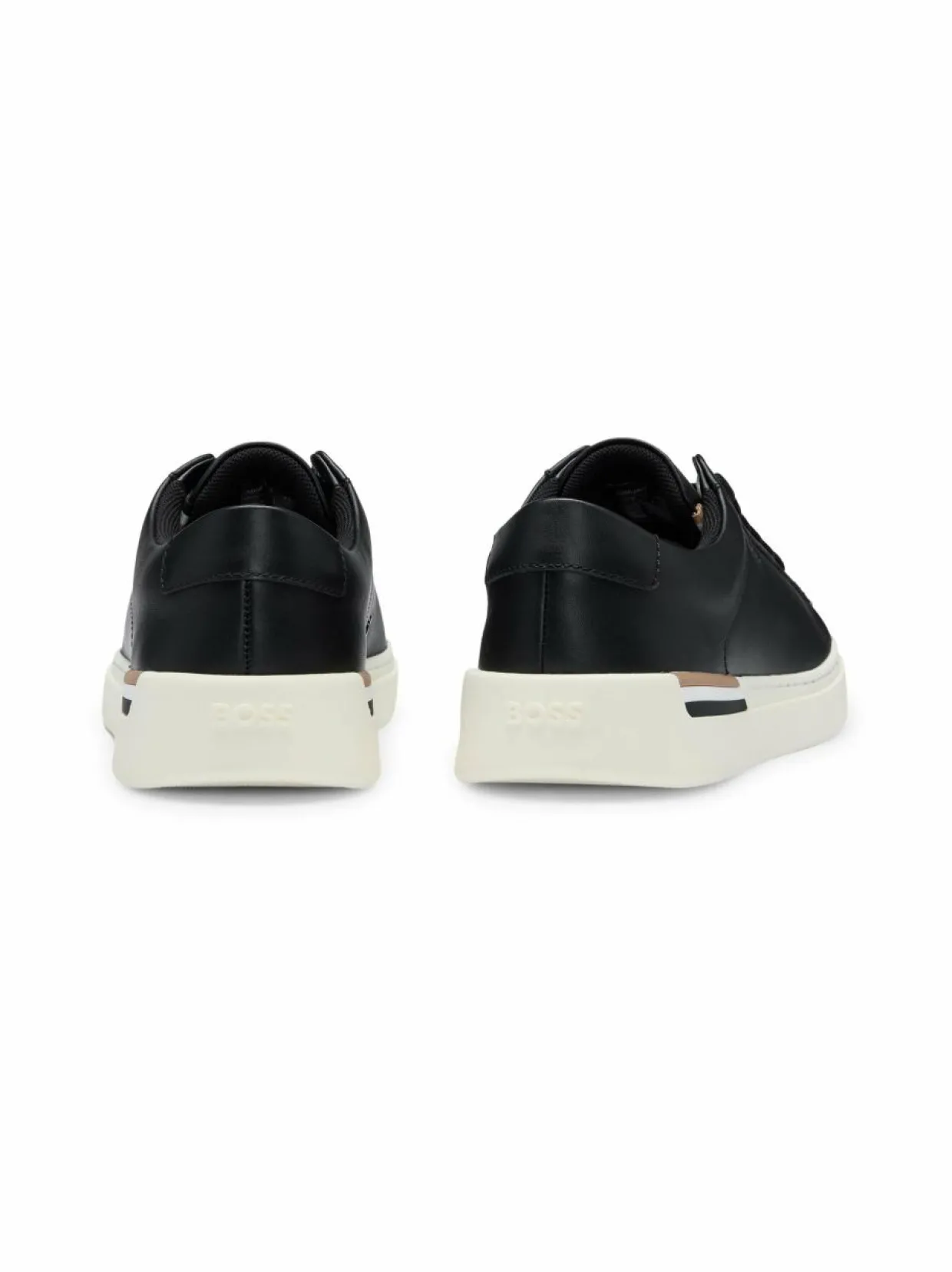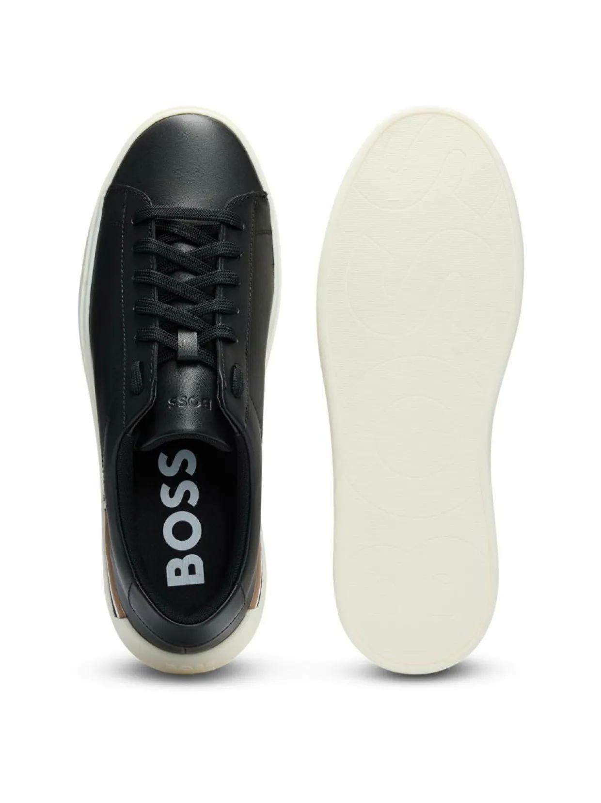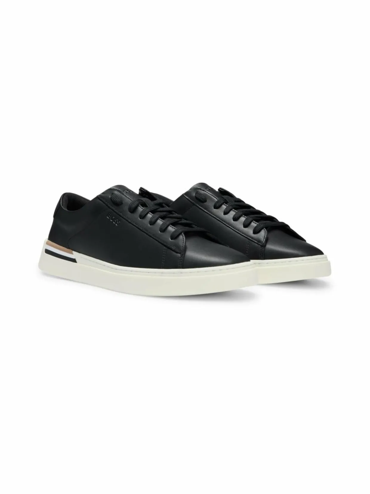 Klassiset matalavartiset nahkatennarit BOSS merkiltä. Yksityiskohtana pyöristetty kärki, painettu logomerkki sekä logoraidat ulkopohjassa. Kiinnitys nauhoilla. Pehmustus varren reunoilla ja kantapäässä lisäämässä käyttömukavuutta.