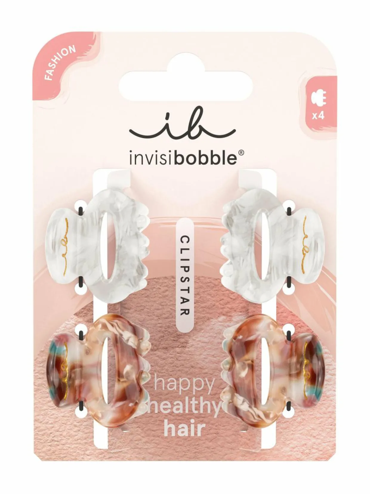 Invisibobble IB CLIPSTAR Petit Bijoux S -setti sisältää 4 pientä hiusklipsiä neutraaleissa ja tyylikkäissä sävyissä. Hiusklipsit on valmistettu HairLoveTech -tekniikalla, joka takaa hellävaraisen pidon minimoiden vauriot. Ihanteellinen hiusasuste kaikenlaisiin kampauksiin! Nosta kampauksesi uusiin ulottuvuuksiin samalla panostaen hiustesi kuntoon. Nauti napakasta pidosta merkittävästi vähemmillä vaurioilla.