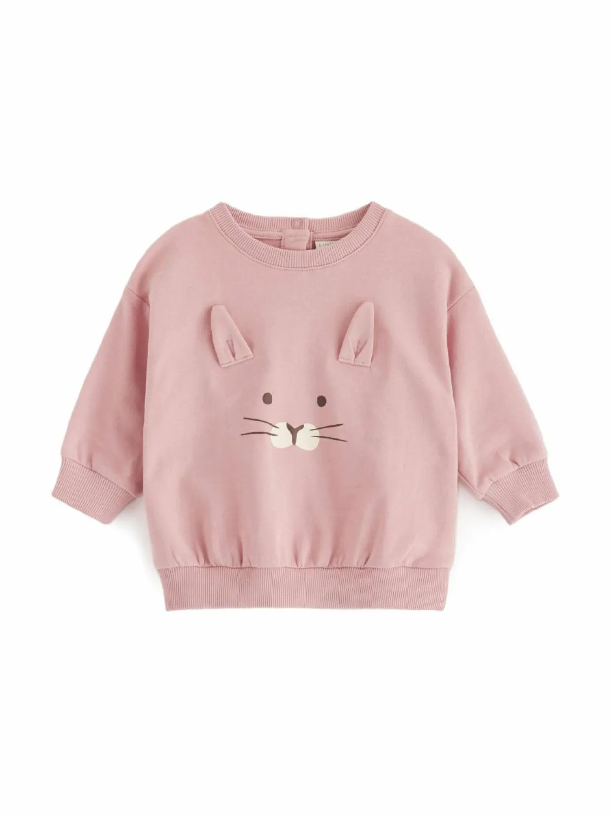 Lindexin mukavassa puuvillaisessa collegepaidassa on pehmeä harjattu sisäpinta ja söpö kuvio edessä, jossa on ommellut korvat.