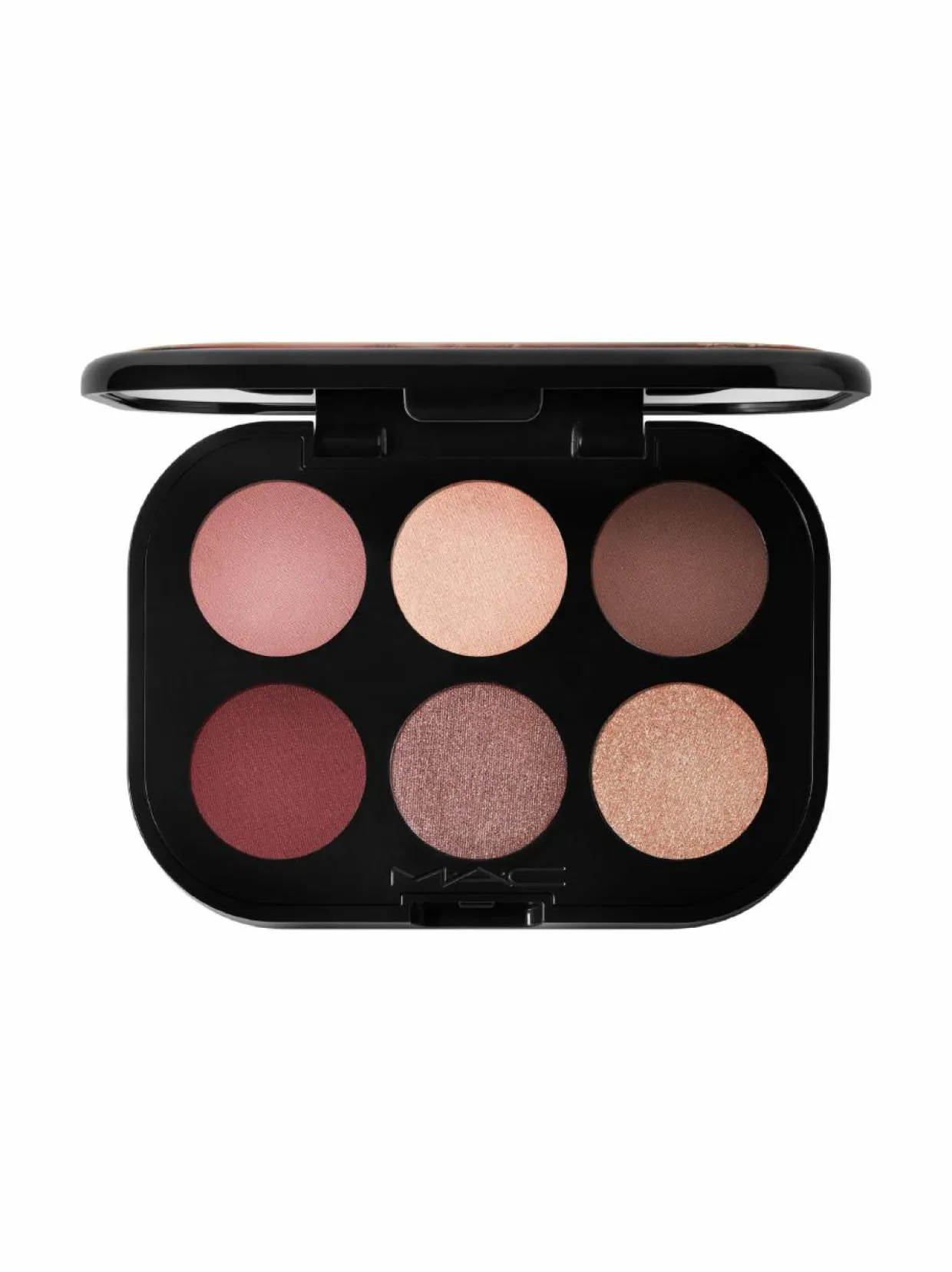 MAC Connect In Colour Eye Shadow Palette on upea luomiväripaletti, joka tarjoaa kuusi eleganttia, Bordeaux-sävyä, täydellisesti tasapainotettuna metallisten, mattapintaisten ja hohtavien viimeistelyjen välillä. Tällä paletilla voit luoda hienostuneita lookeja, jotka korostavat silmiäsi kauniisti.Erittäin pigmenttiset luomivärit ovat kevyitä ja silkkisiä koostumukseltaan, mikä tekee niiden levittämisestä, kerrostamisesta ja häivyttämisestä helppoa.
