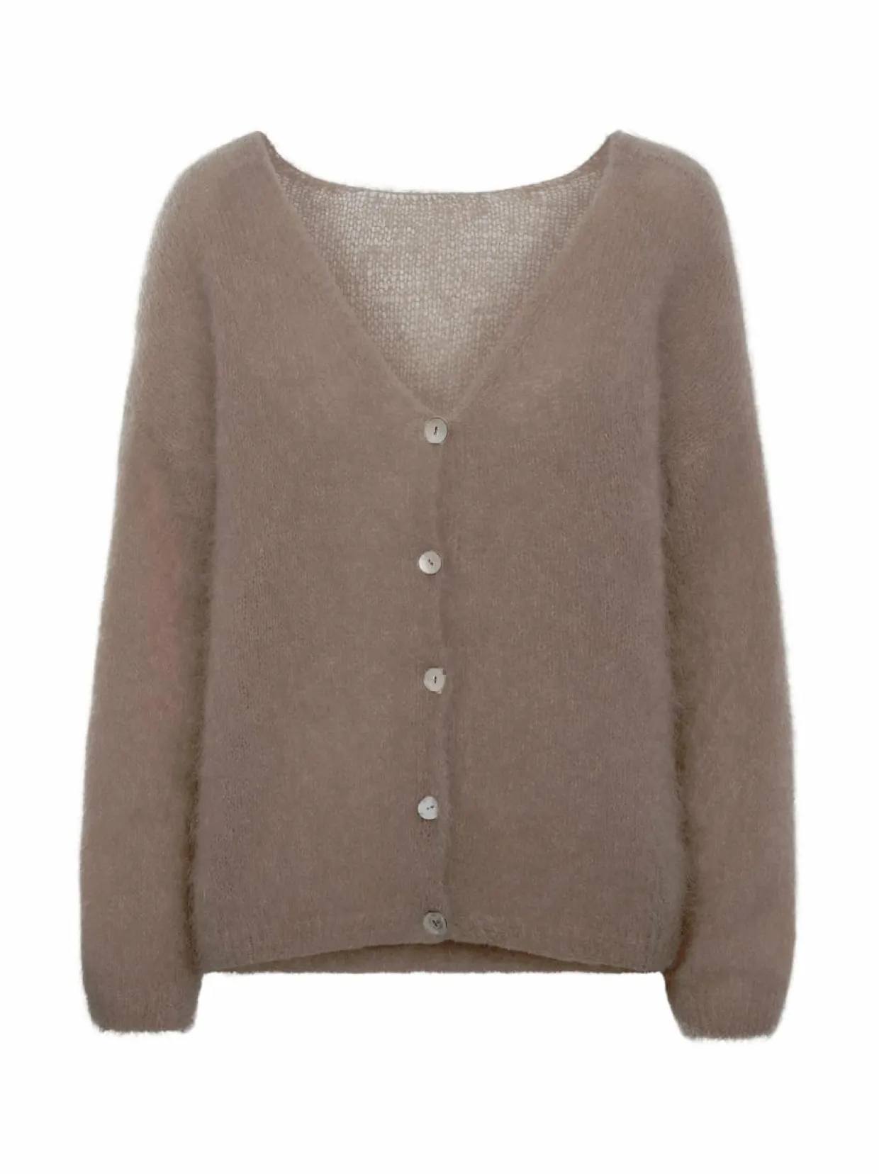 Pehmeä ja ihastuttava Cornelia on oiva valinta välikauden viileisiin päiviin. Neuletakki on valmistettu laadukkaasta mohairsekoitteesta. Takissa on normaali mitoitus, pudotetut olkapäät ja kokopitkä napitus.