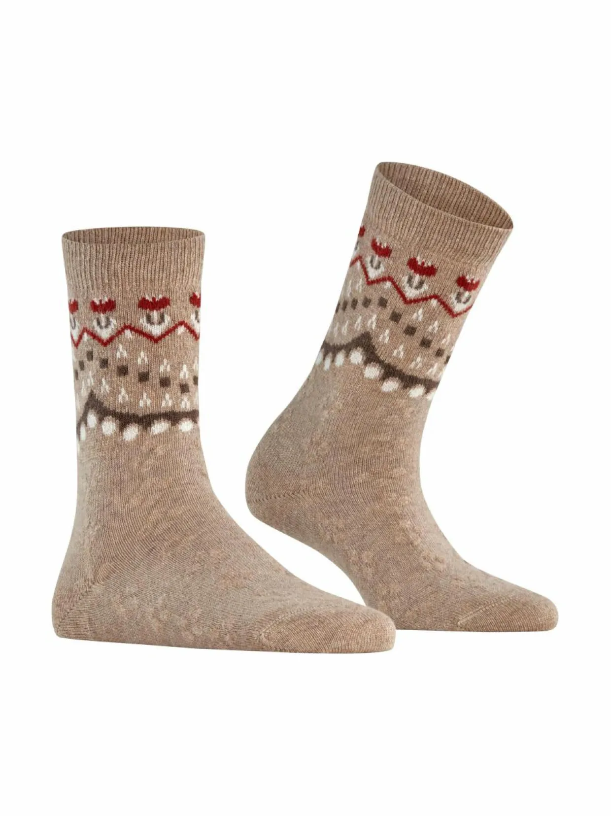 Näissä ylellisissä ja mukavissa sukissa yhdistyvät FALKE Cosy Wool -kankaan testatut ominaisuudet ja moderni tulkinta norjalaisesta ilmeestä. Klassinen talvifolk-kuosi yhdistyy herkkiin, naisellisiin yksityiskohtiin, kuten kukka-aiheisiin ja hienovaraisiin koristeisiin. Kestävän materiaalin ansiosta, joka koostuu merinovillasta, kashmirista ja viskoosista, sukat tarjoavat erityisen pehmeän ja lämpimän käyttömukavuuden. Vahvistetut, kovaa kulutusta kestävät vyöhykkeet takaavat myös korkean kestävyyden, ja täydellinen FALKE-istuvuus viimeistelee mukavuuden tunteen.