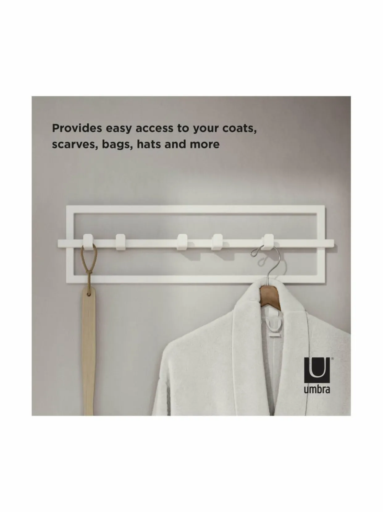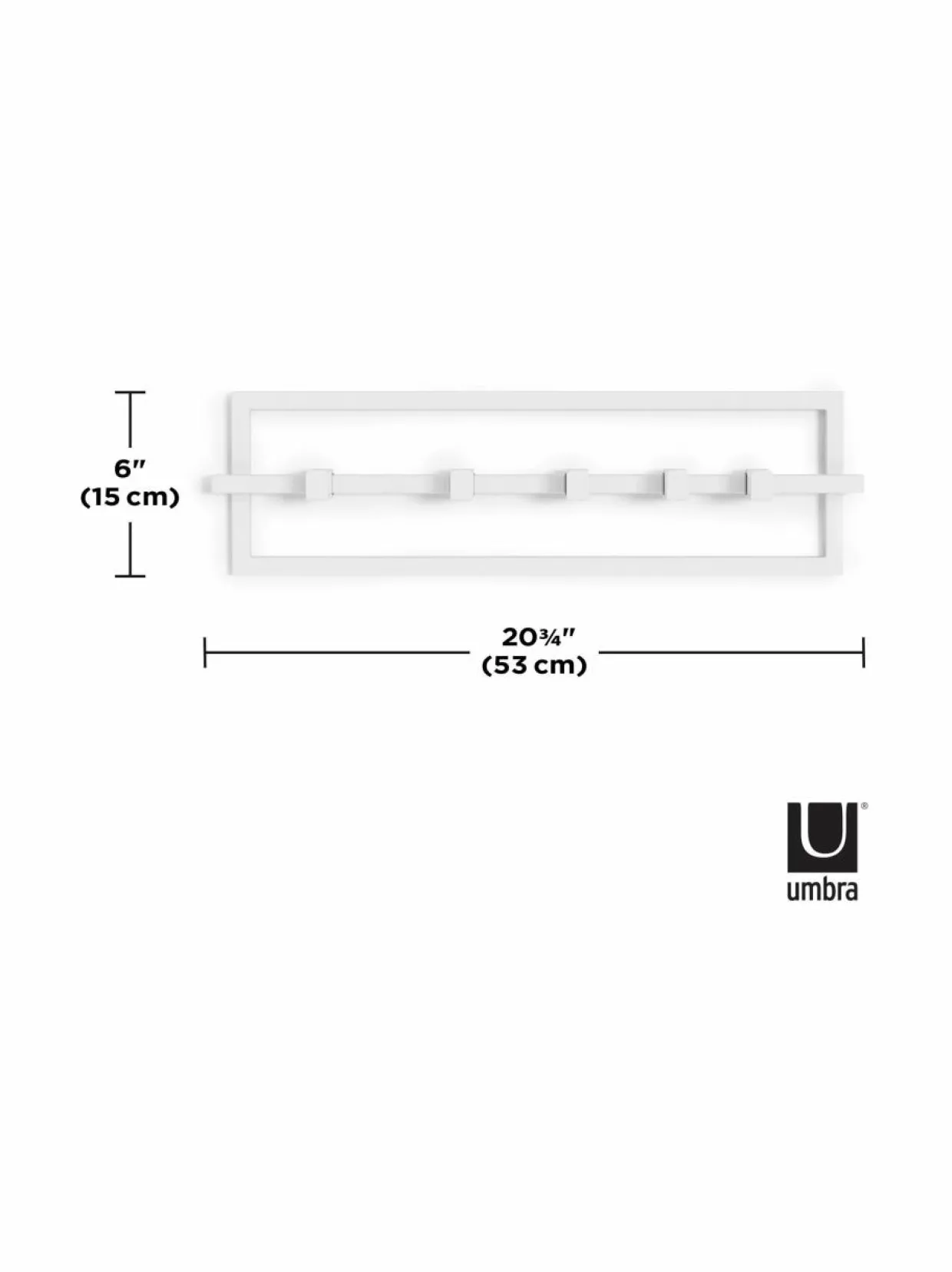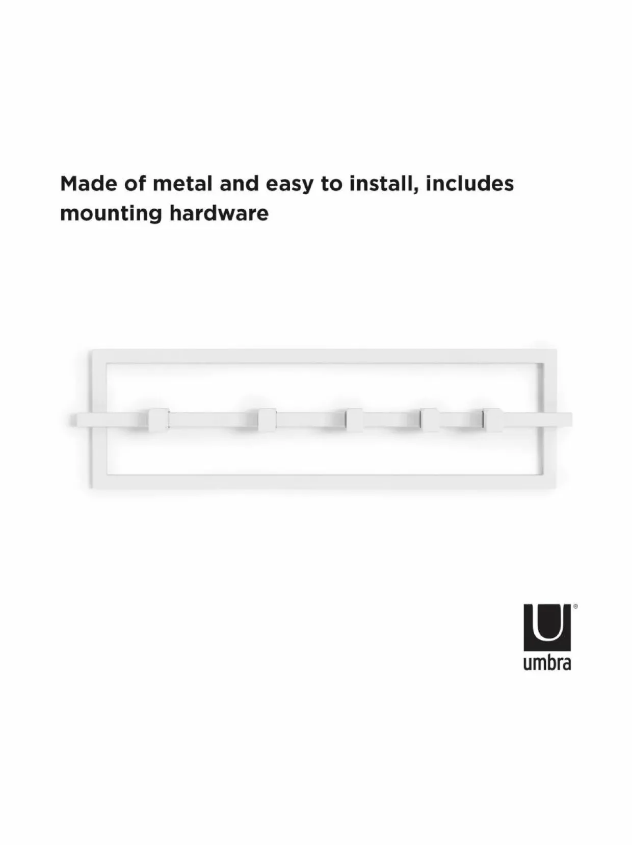 Tuotenumero155118421 Materiaali98 % teräs, 2 % ABS-muovi Leveys53 cm Korkeus15 cm Syvyys6 cm Paino0.5 kg ValmistusmaaKiina VäriWHITE Koko53 x 6 x 15 cm AvainsanatUmbra, teräsnaulakko, seinään kiinnitettävä naulakko, eteisnaulakko, takkinaulakko, design naulakko