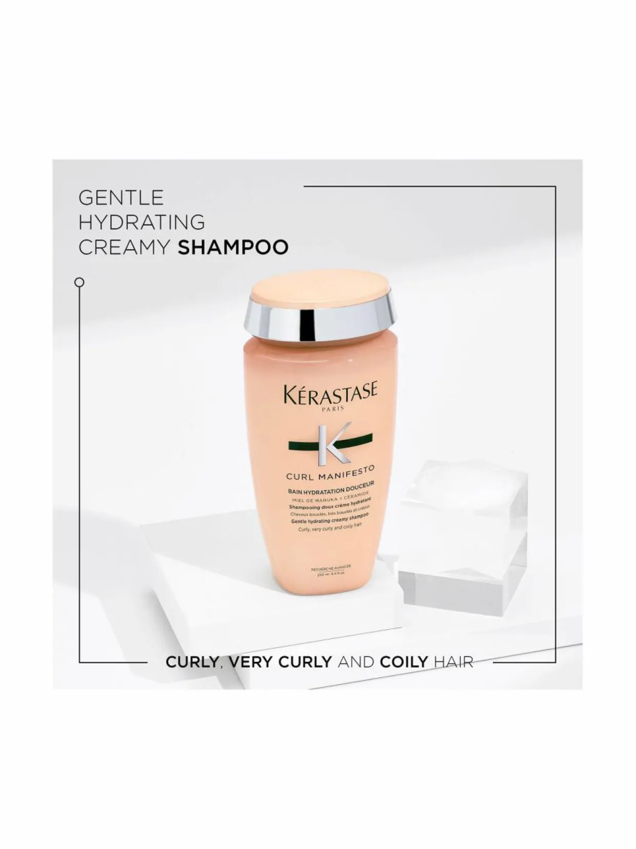 Hellästi kosteuttava ja voidemainen Kérastase-shampoo, joka sisältää Manuka-hunajaa ja keramideja, kaiken tyyppisille kiharoille hiuksille. Puhdistaa hiuspohjan ja hiukset hellävaraisesti poistamalla epäpuhtauksia, saastehiukkasia ja tuotejäämiä samalla säilyttäen hiuspohjan omat öljyt. Antaa kiharoille tärkeää kosteutusta latistamatta niitä.