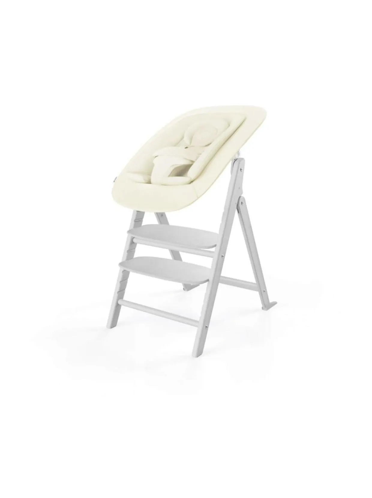 Bouncer vastasyntyneen istuimen avulla jo vauvaikäinen voi olla yhdessä muun perheen kanssa pöydän ääressä samalla tasolla. Miellyttävästi pehmustettu istuin sopii max 9kg painoon asti. Lapsi kiinnitetään istuimeen viisipistevaljailla. Istuimessa on irrotettava tyyny ja sisäosa. Istuimen ollessa kiinni Click&Fold tuolissa, sitä voidaan säätää muutamaan eri asentoon. Lapsen oppiessa istumaan (noin 6kk ikäisenä), siirrytään käyttämään Baby Set vauvasettiä. Baby Set on helppo kiinnittää tuoliin paikoilleen. Tarjotin mahdollistaa syöttötuolin käytön itsenäisenä ja yksinseisovana syöttötuolina. Sekä tarjotin että baby set on helppo pyyhkäistä ruokailun jälkeen puhtaaksi tai pestä astianpesukoneessa.