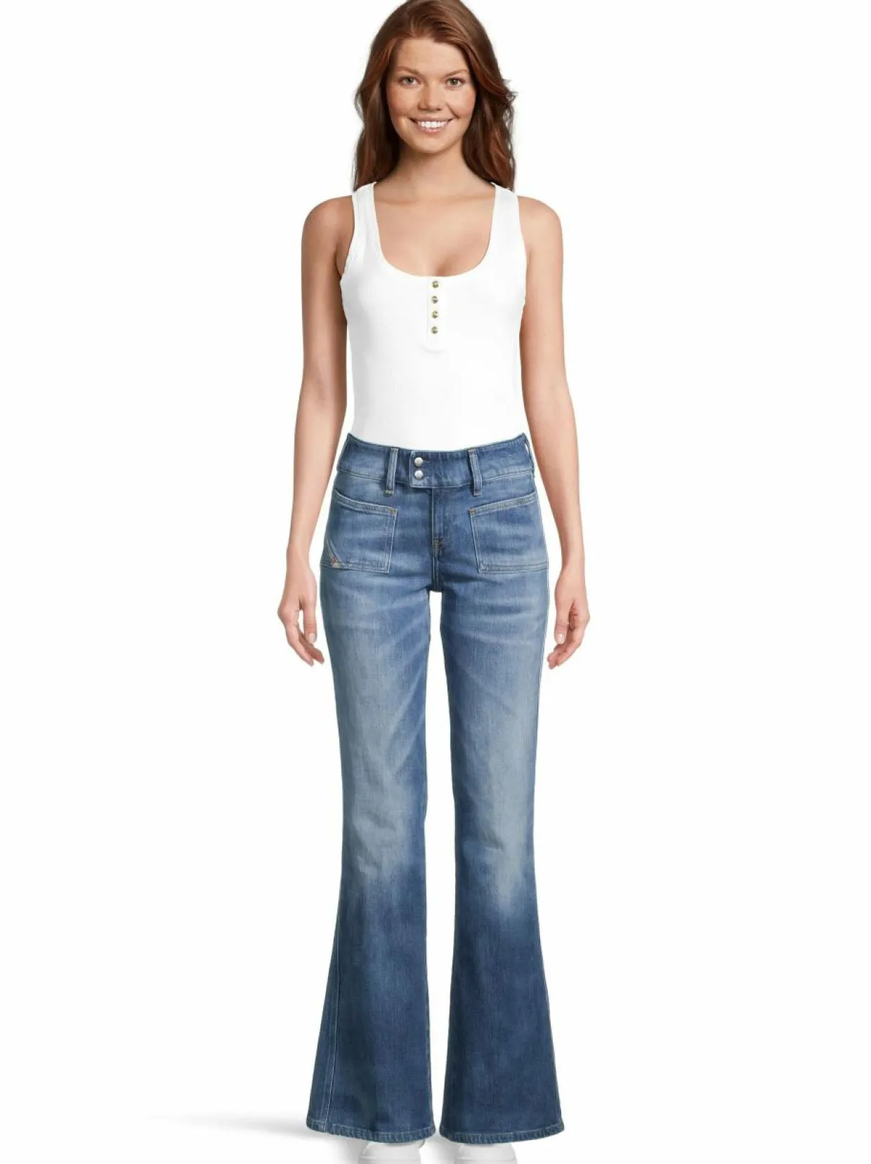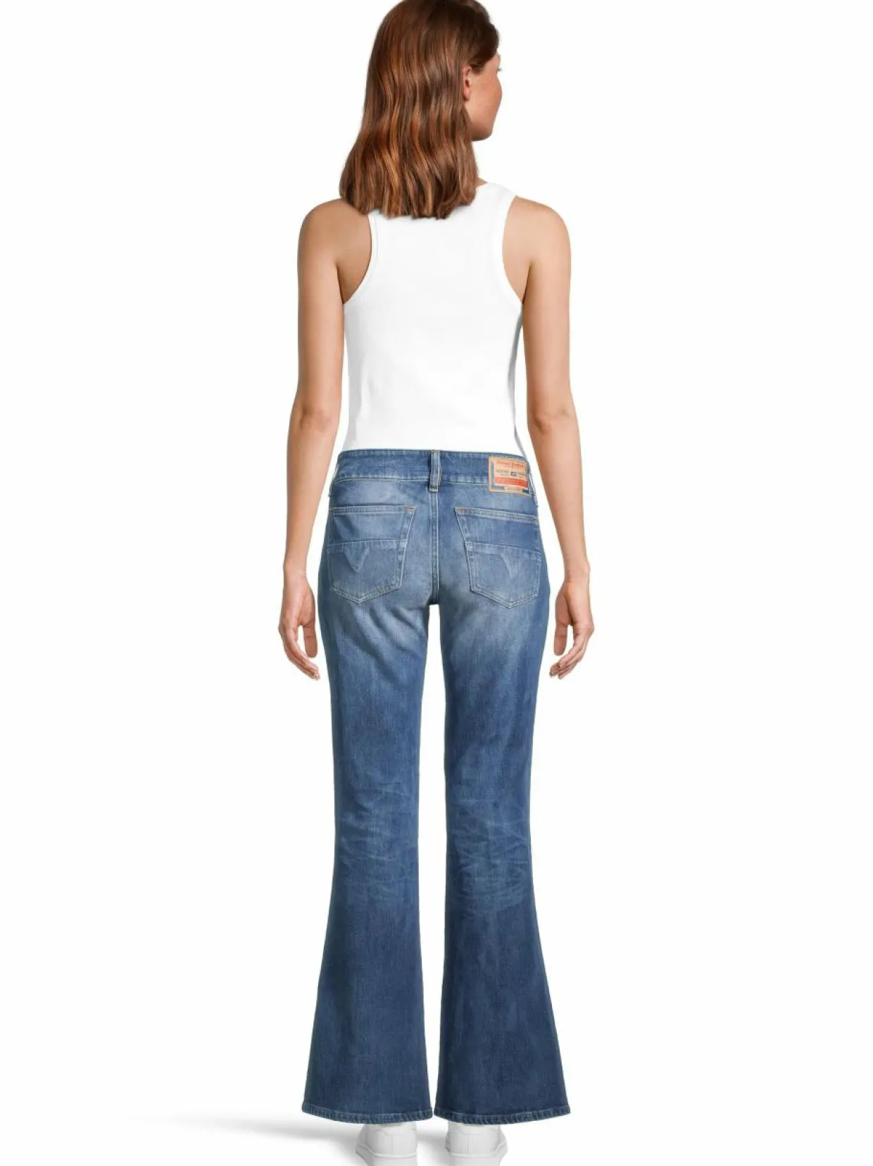 Dieselin slim fit -malliset farkut levenevällä Bootcut-muotoilulla. Vyötärö on matala. Tämä on Diesel Noughties -farkkuihin perustuva päivitetty denimhousumalli, jossa on alkuperäiselle mallille ominaiset taskut ja kaksinkertainen nappisulku edessä. Denimkankaiseen materiaaliin on lisätty myös pikkasen joustoa käyttömukavuutta varten.
