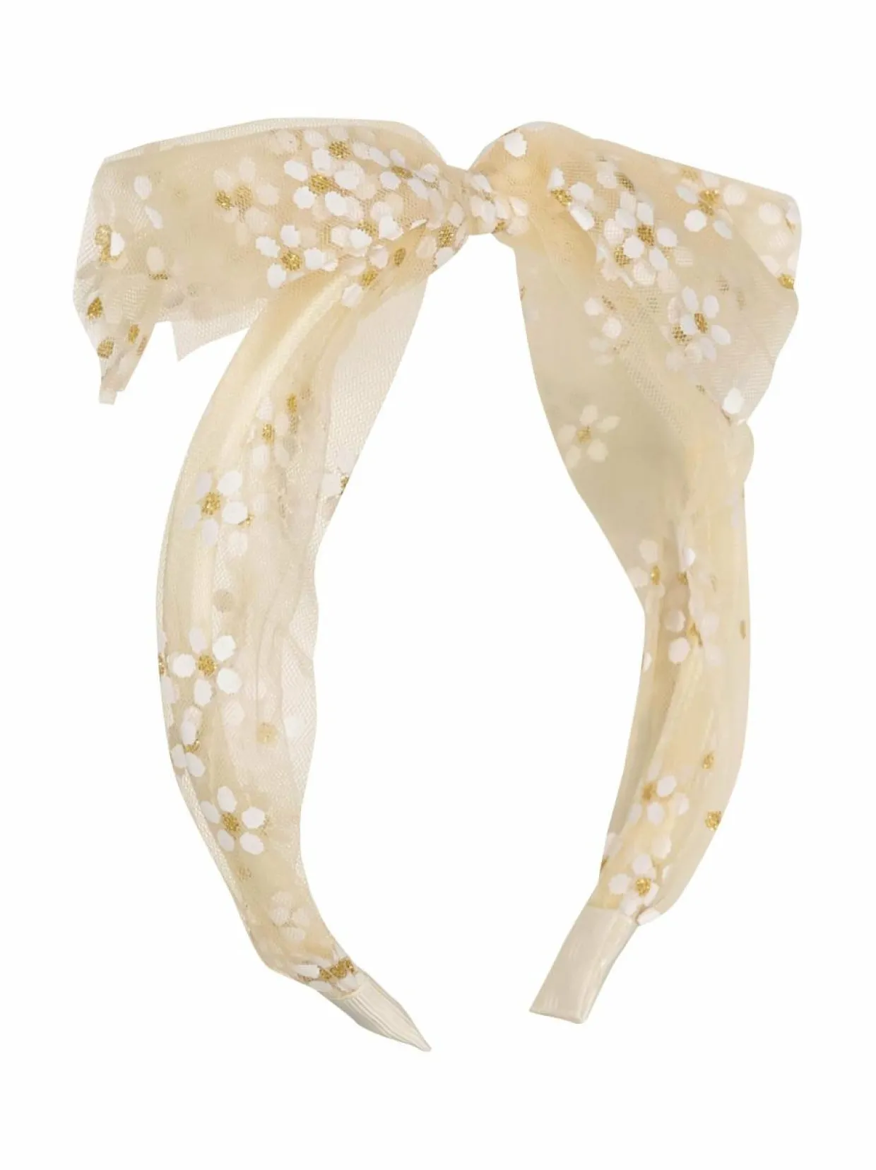 Rockahula-merkin Daisy Tulle Bow -hiuspanta on valmistettu kauniista tyllistä, jonka kukkayksityiskohdat kimaltevat ihastuttavasti. Hiuspanta viimeistelee asun ja luo huoliteltua ilmettä. Hiuspantaa on mukava käyttää ja se pysyy hyvin paikoillaan, pitäen hiukset pois kasvoilta. Se on täydellinen lahja lapselle, joka rakastaa söpöjä hiuskoristeita.
