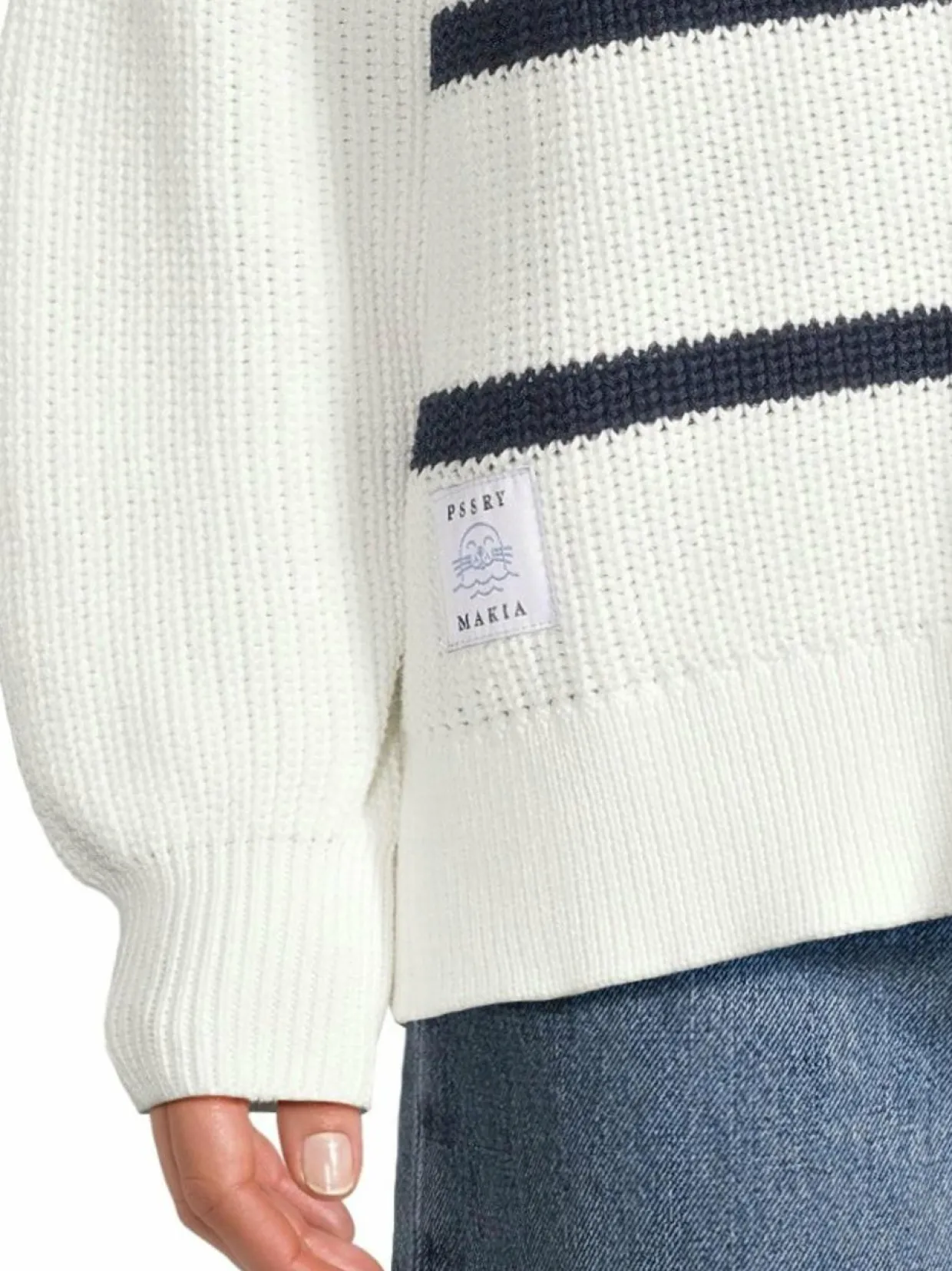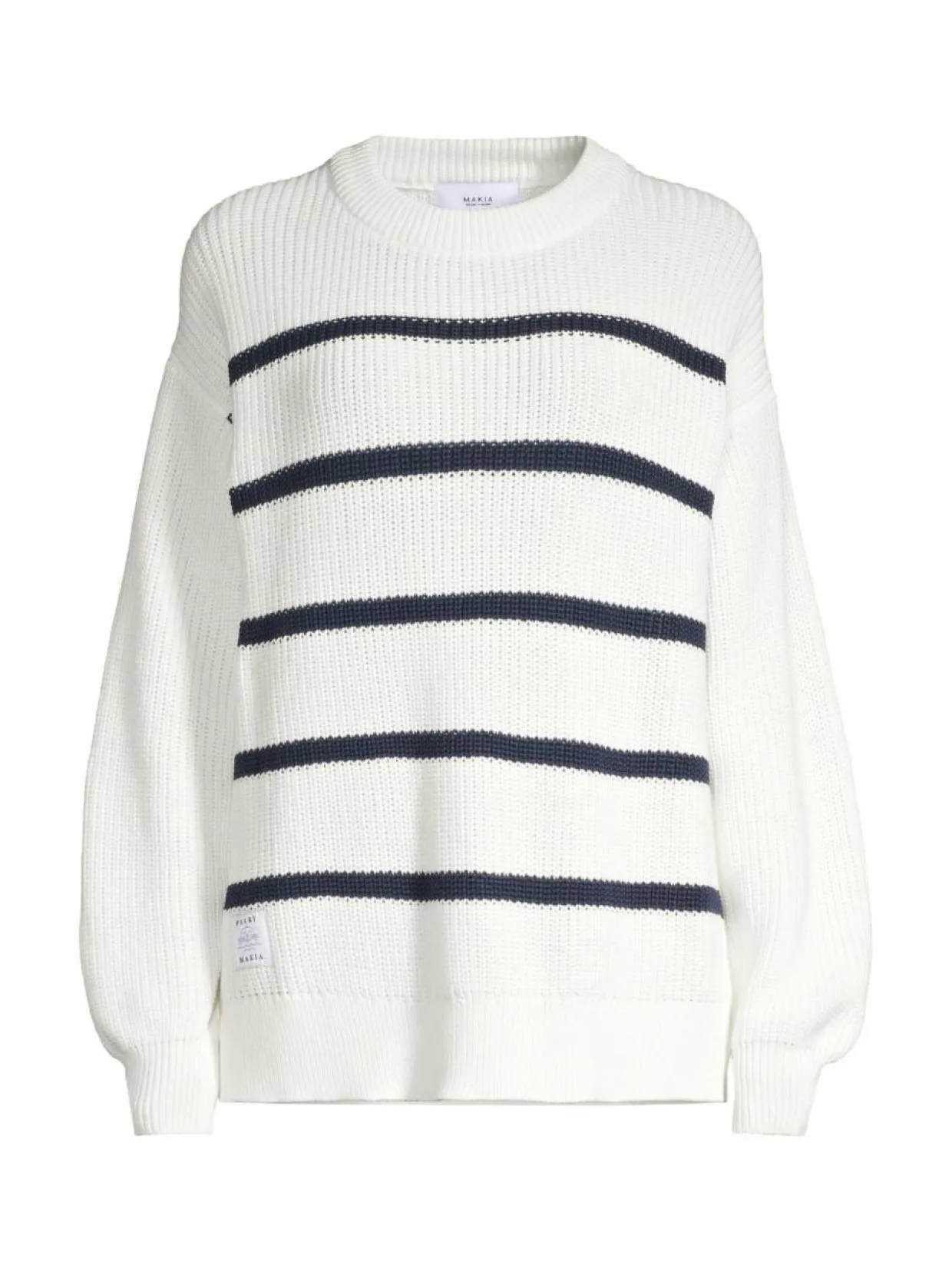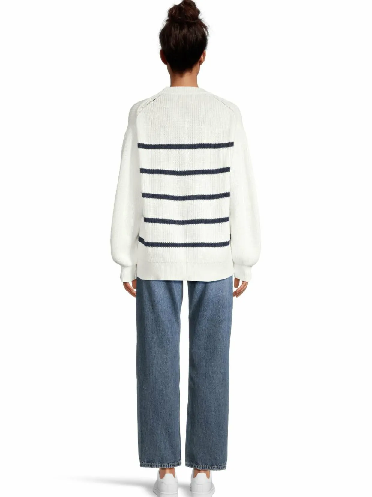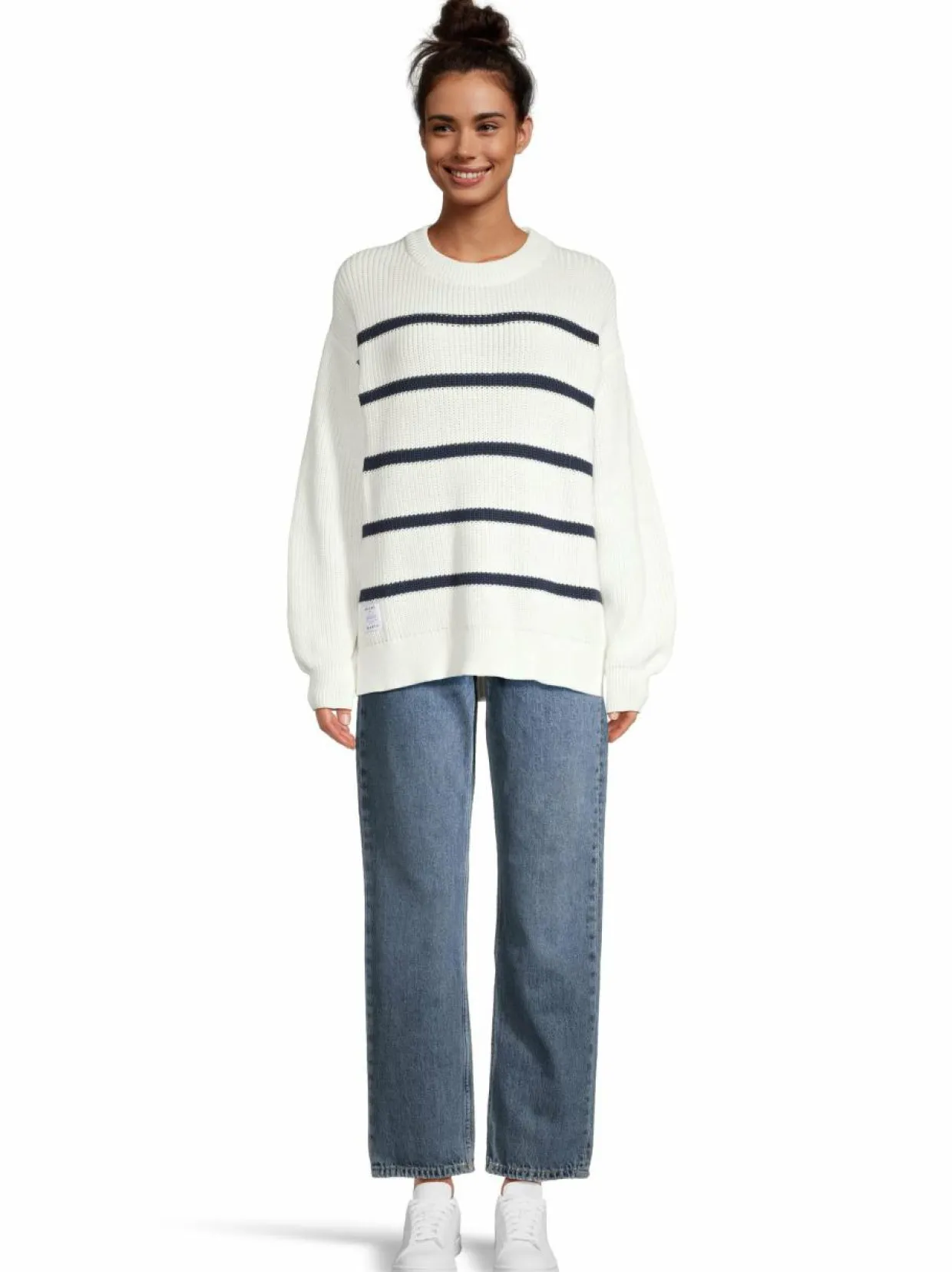 Mukava neulepusero Makia vaatemerkiltä. Dalsbruk-neulepusero on valmistettu pehmeästä ja kevyestä luomupuuvillasta. Tämä merihenkinen raitaneule on suunniteltu rentoon istuvuuteen.