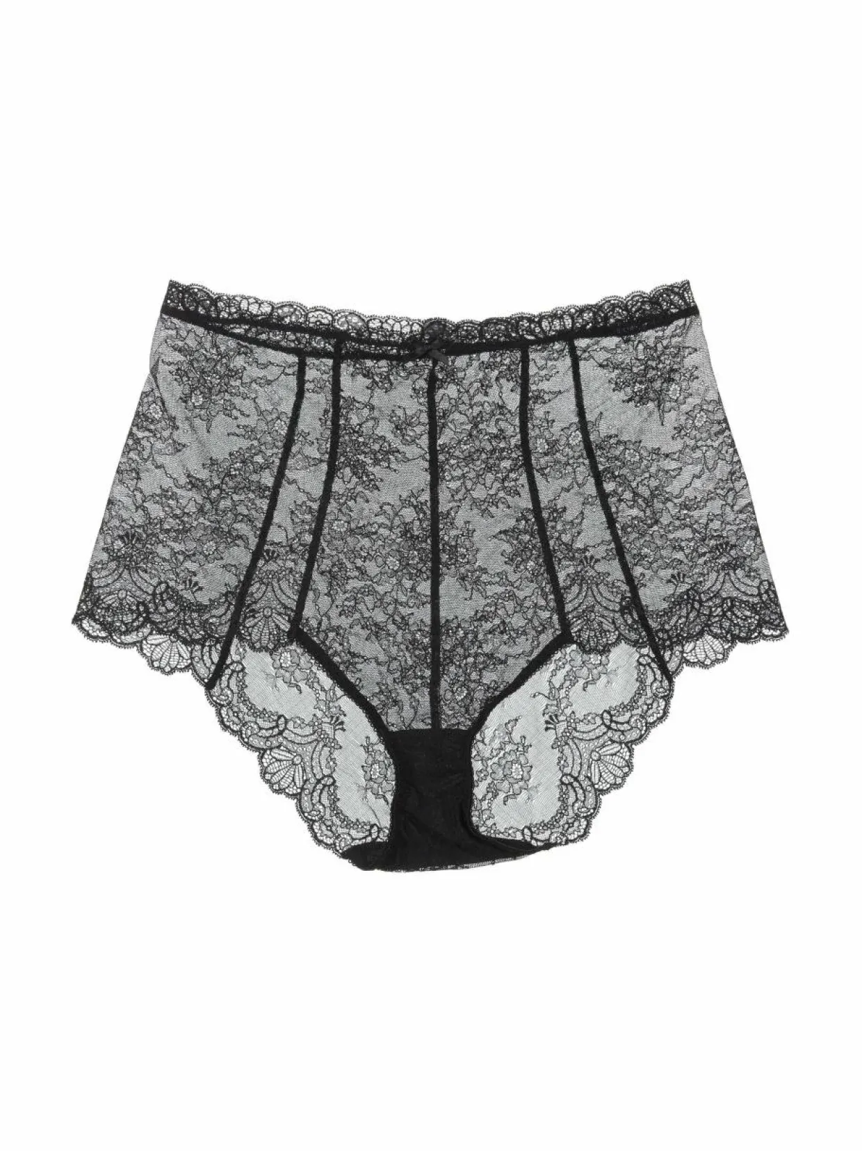 Korkeavyötäröiset Aubade Danse des Sens High Waist Shaping Brief -alushousut ovat viehättävää, läpikuultavaa pitsiä. Haara-osassa on pehmeä puuvillavuori. Etuosan pieni rusetti viimeistelee ilmeen.