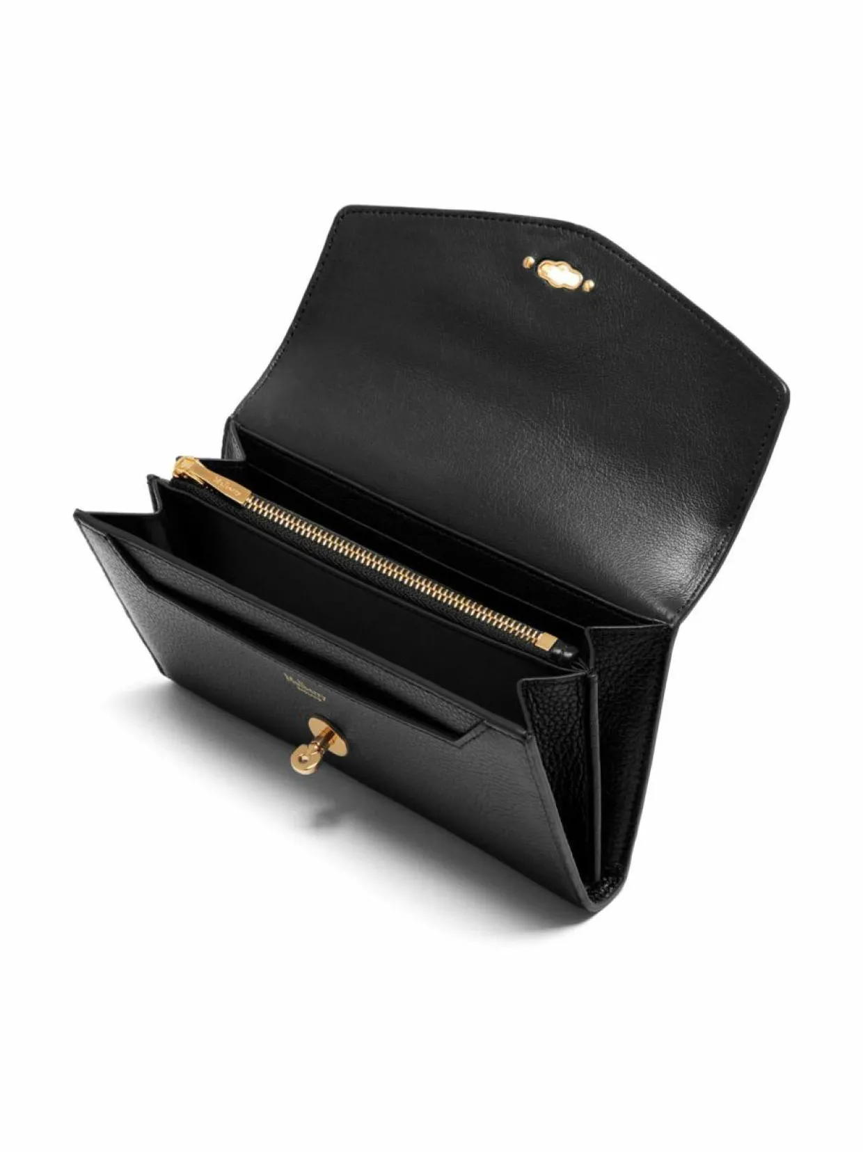 Mulberry Darley on elegantti ja näyttävä lompakko, jossa yhdistyvät brändin ikoninen Postman’s Lock -lukko ja harkitut yksityiskohdat. Pienirakeisesta vasikannahasta valmistetussa lompakossa on tilaa tärkeimmille korteille ja seteleille: kaksiosainen lokero, kaksitoista korttitaskua, vetoketjullinen kolikkotasku ja lisätaskuja sisä- ja ulkopuolella. Sisävuori on pehmeää nappanahkaa, ja viimeistely kultasävyisillä metalliyksityiskohdilla viimeistelee klassisen ilmeen.