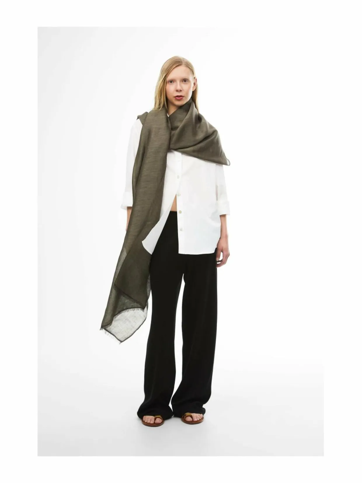 Tuotenumero169988003 Materiaali70 % pellava, 30 % silkki Hoito-ohjeetKuivapesua suositellaan Kokotiedot70 x 200 cm ValmistusmaaNepal Väri723 DARK OLIVE Koko70 x 200 cm Avainsanatbalmuir, pellavahuivi, silkkihuivi, pellava, silkki, kesähuivi, kaulaliina