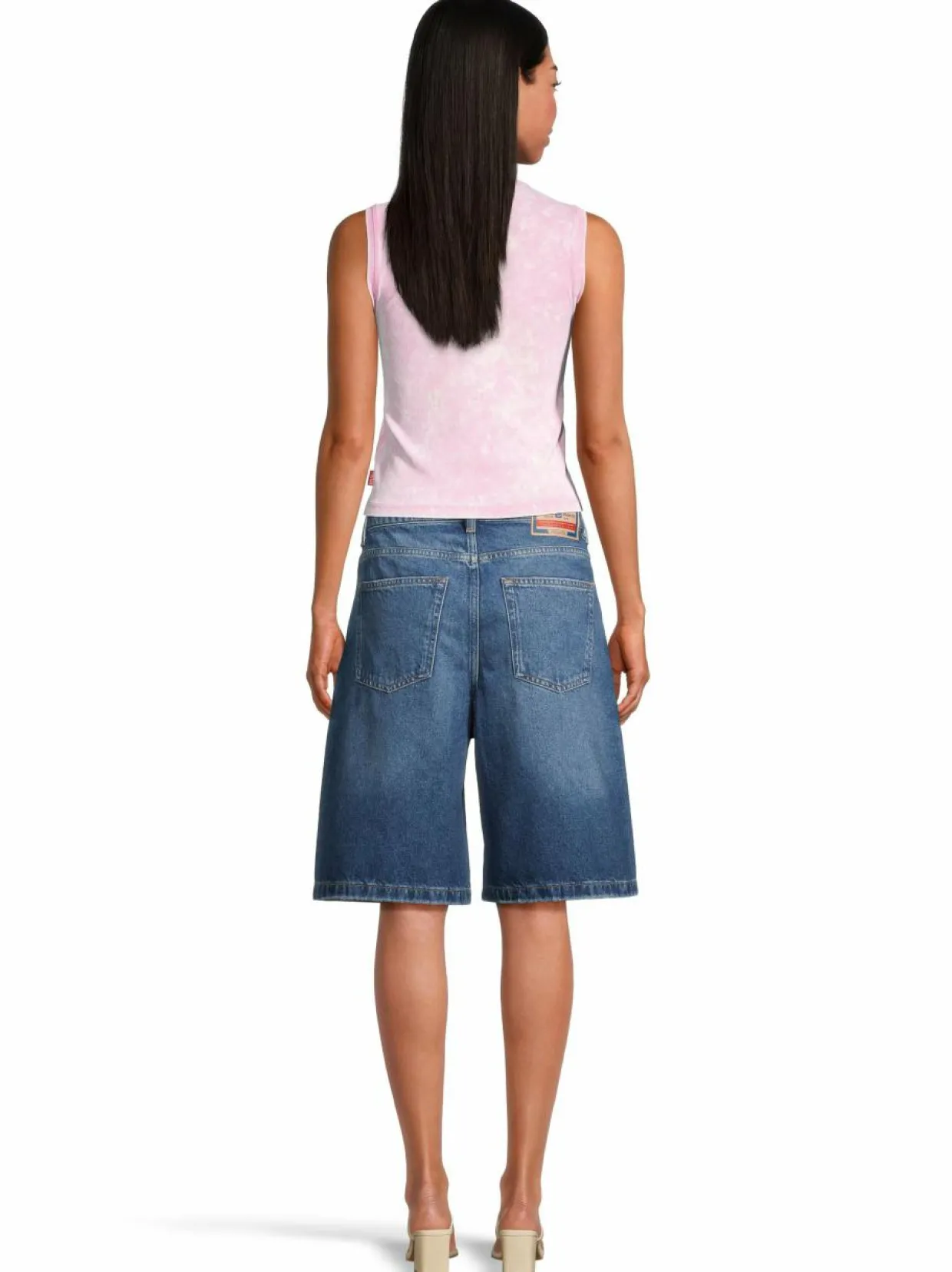 Mukavan leveälahkeiset farkkushortsit Diesel merkiltä. Lahkeessa on revitty yksityiskohta. Shortsit on valmistettu klassisesta joustamattomasta denimkankaasta.