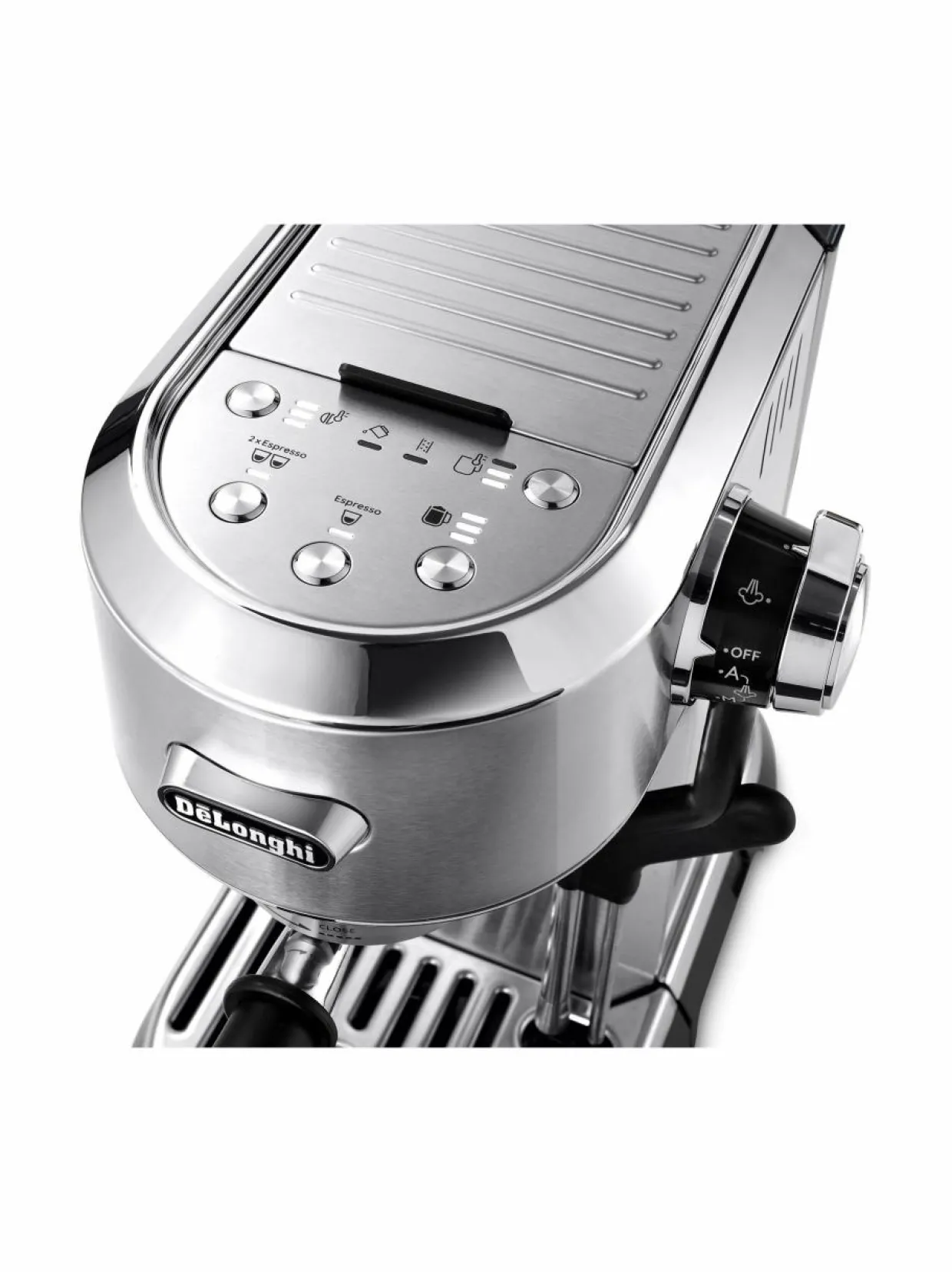 - Oikeaoppiset cremapintaiset Espressot valmistuvat kahvijauheesta tai ESE-annosnapeista. Myyntipakkaus sisältää ammattimaisen kahvitampperin, jonka avulla kahvijauhe on helppo painaa yksiseinäisiin yhden tai kahden kupin suodattimiin ja suodattimet säilyvät tallessa kätevästi laitteen päällä sijaitsevassa varusteiden säilytyslokerossa.