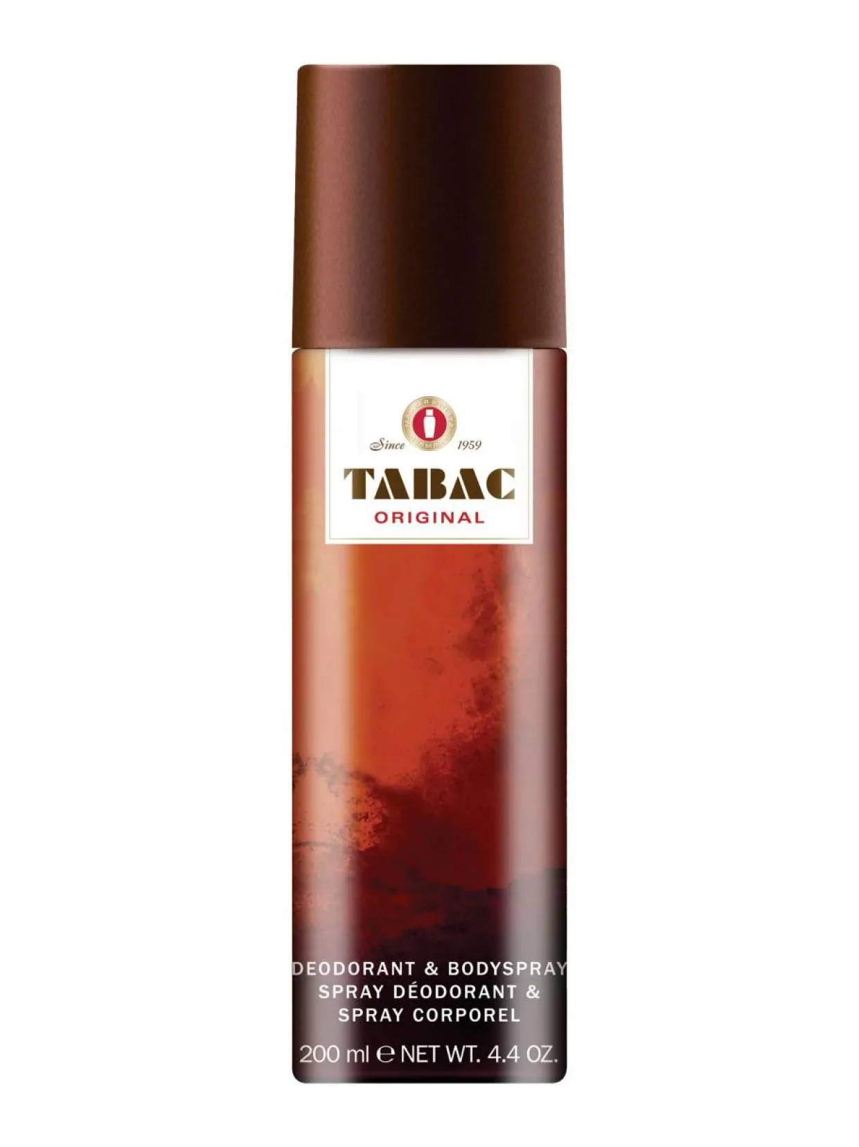 Tabac Original Deodorant & Body Spray -deodoranttisuihke antaa 24 tunnin suojan ehkäisemään hien hajua tunnuksenomaisella Tabac Original -tuoksulla sekä pitkäkestoisen hienostuneen raikkauden. Voit suihkuttaa sitä perinteisesti kainaloihin ehkäisemään hien hajua tai koko vartalolle tuomaan pitkäkestoisen hienostuneen raikkauden Body Spray -vartalosuihkeen tapaan.