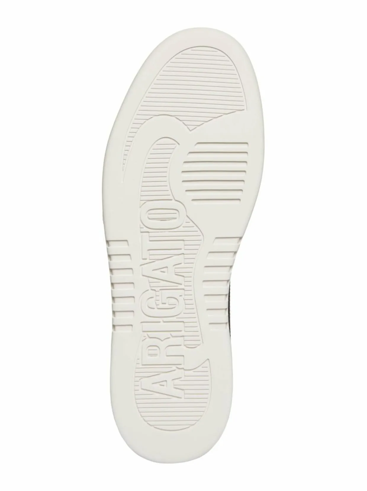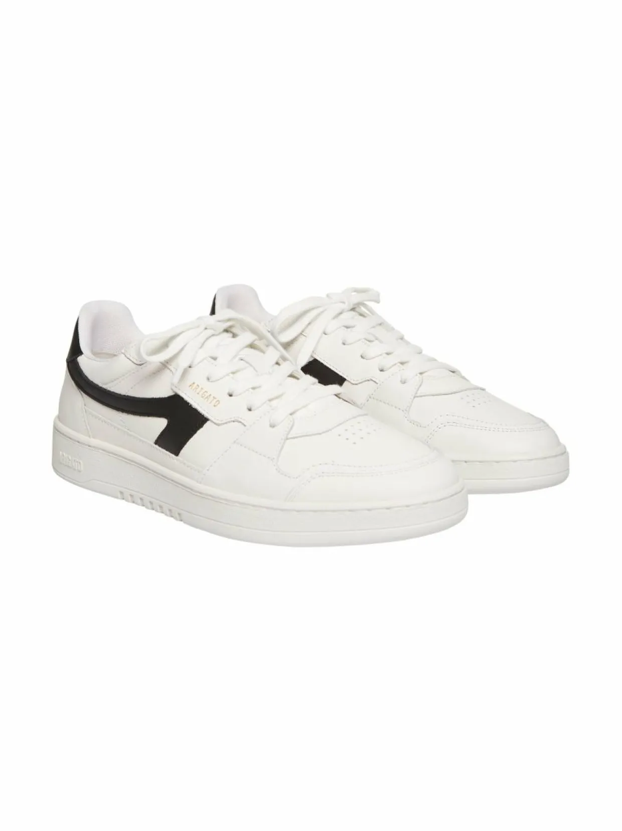 Axel Arigaton Dice-A -sneakerien päällisessä on kontrastinen, nahkapaneeleista koostuva ilme. Sivulta ja takaa löytyvät kullansävyiset logotekstit. Kuminen ulkopohja antaa vakaan pidon. Kiinnitetään nauhoilla.
