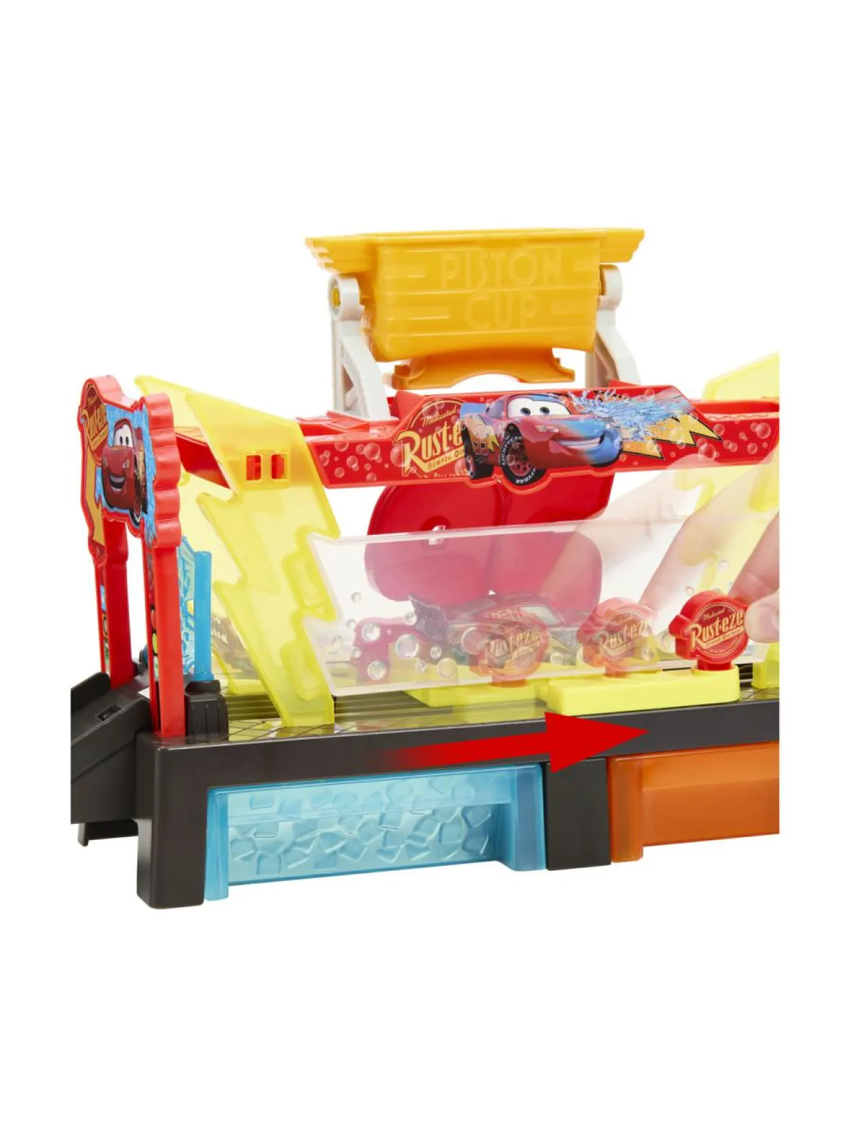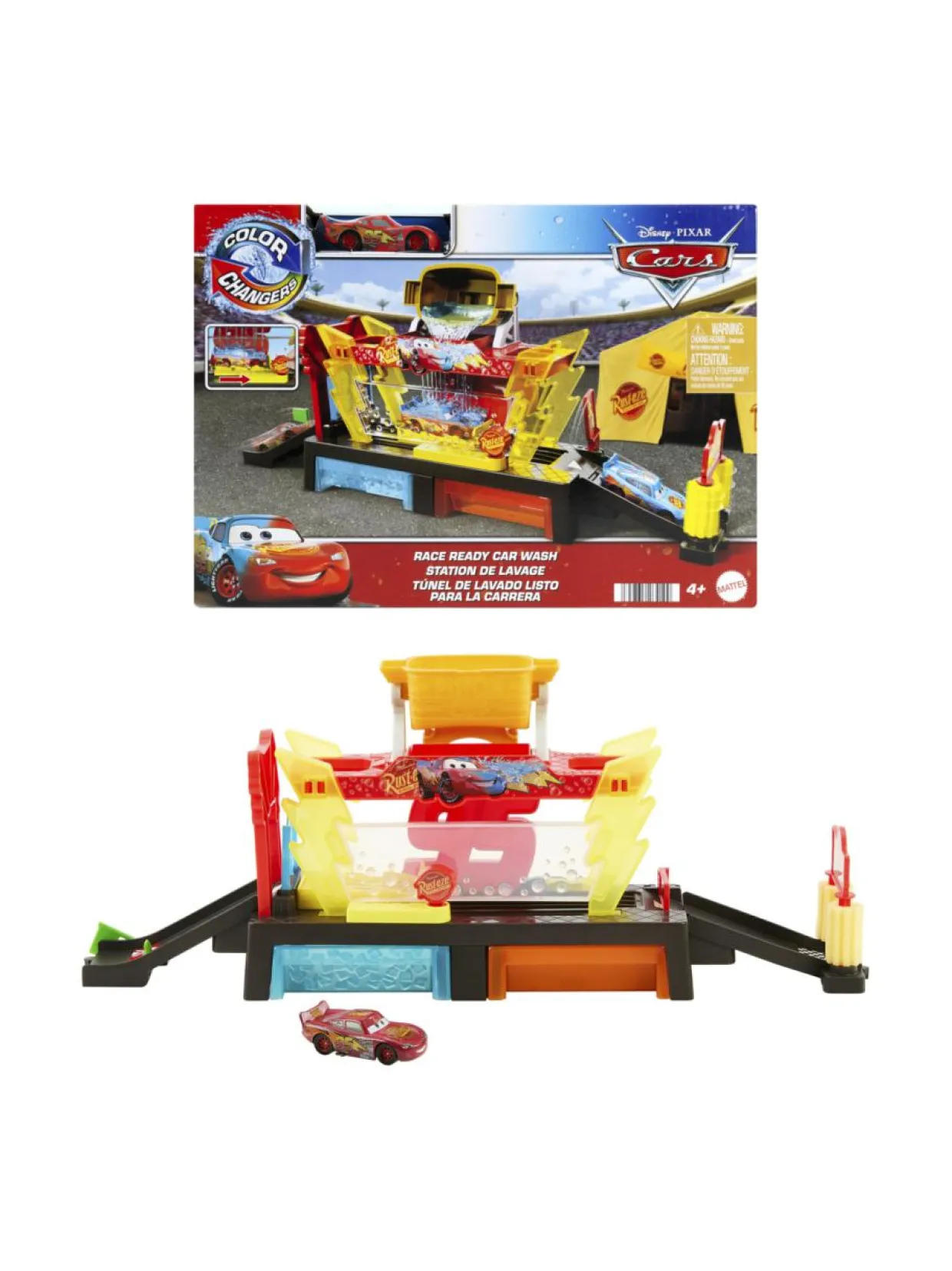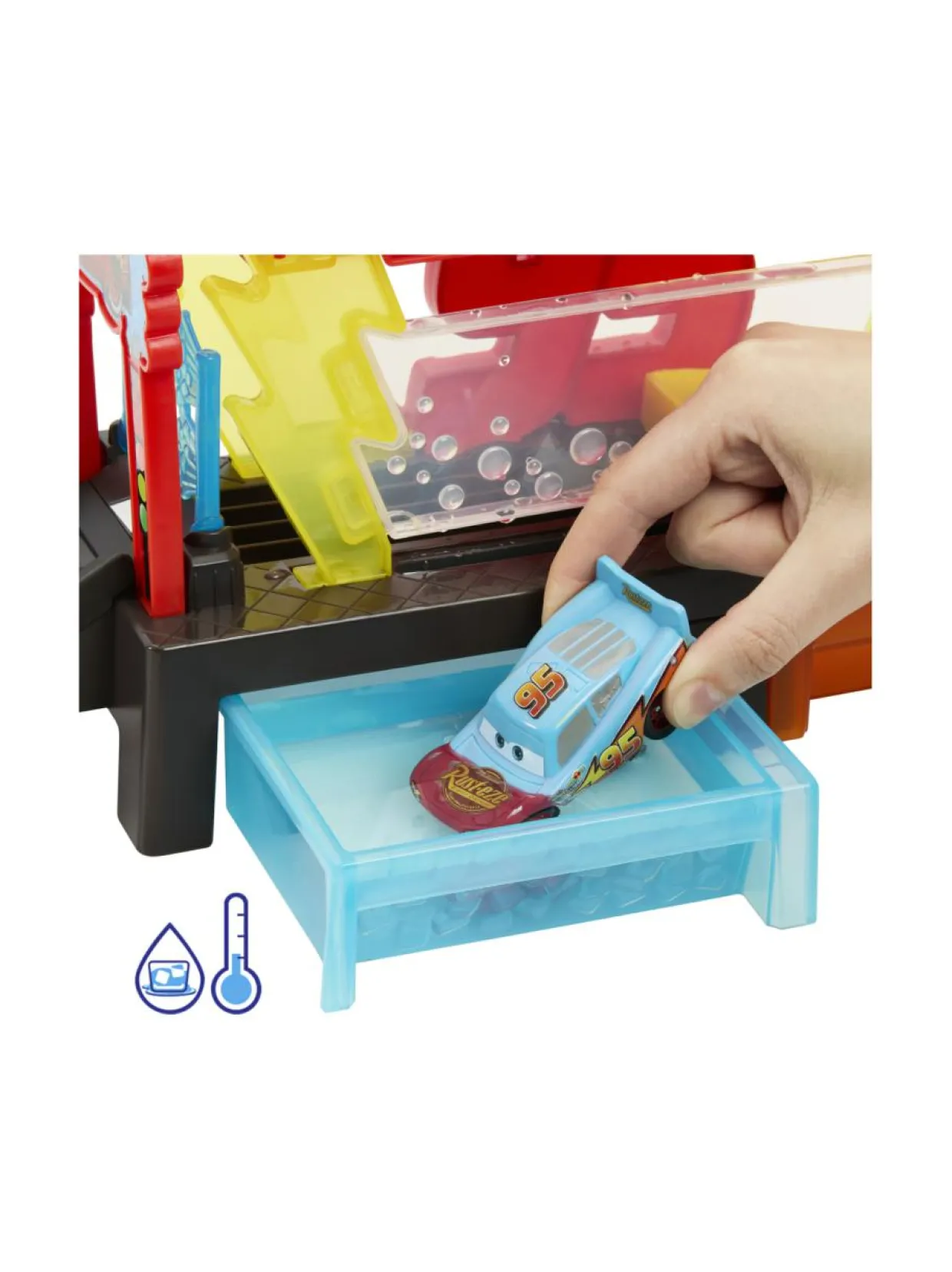 Tässä Cars-aiheisessa autopesulassa on väriä vaihtava Salama McQueen -auto, joka vaihtaa väriä kuumalla ja kylmällä vedellä. Setti voidaan yhdistää muihin Cars-leikkialustoihin.